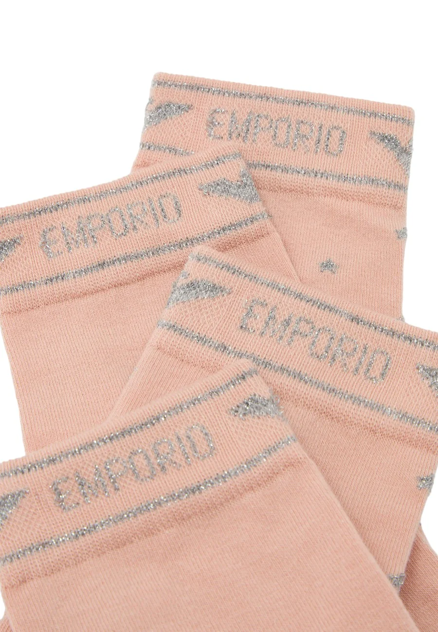 Pack composto da 2 paia di calze realizzate in cotone stretch con logo jacquard lurex. Articolo corredato di gift box logata. 74% Cotone 24% Poliammide 1% Elastan 1%fp