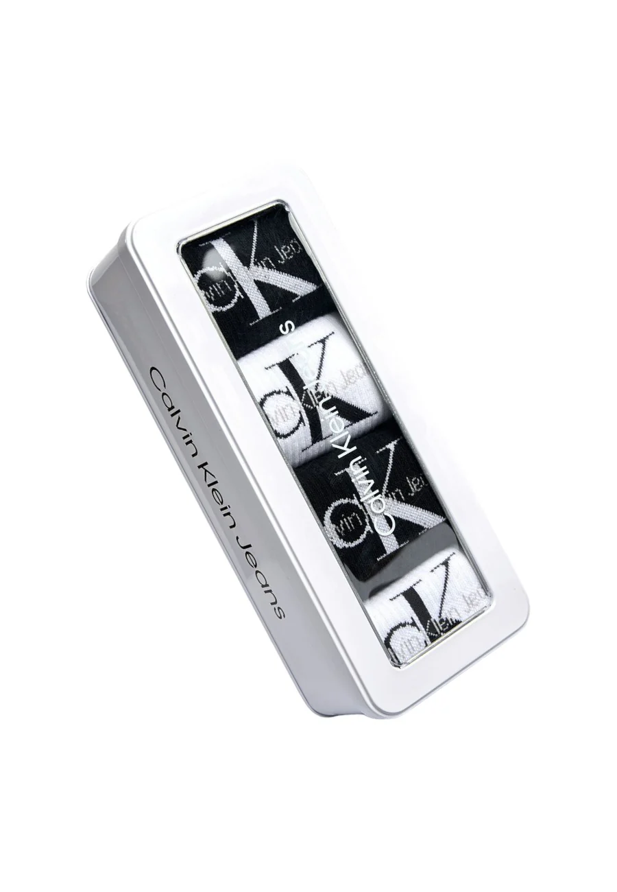 confezione da 4 paia di calzini assortiti bianchi e neri, altezza polpaccio.gift box in metallo 63%cotone 33%poliammide 4%elastan