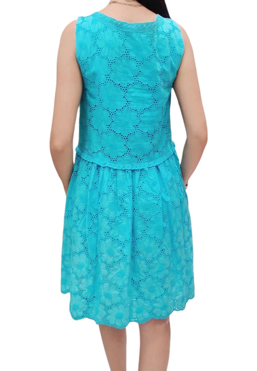 abitino fuoriacqua in leggerissimo cotone tinta unita . Pizzo San Gallo. Doppio strato per le trasparenze