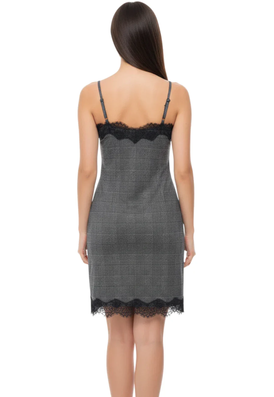Abitino sottoveste Pierre Mantoux in misto viscosa e profili in pizzo. Vestibilitร ed elasticitร donano al capo eleganza e comoditร mentre Il bagliore del lurex con i profili in pizzo nero lo rendono esclusivo e perfetto nelle occasioni piรน particolari.