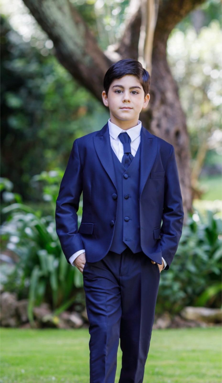 Completo Giacca, Pantalone , Gilet , Camicia , Cravatta colore Blue con bottoni bluย per Bambino – Prodotto in Italia – Stagione Primavera Estate 2025 |Gentleman produce capi sartoriali da Cerimonia, Prima Comunione, battesimo ed eventi in genere per bambino prodotti artigianalmente in Italia e confezionati con ricercati tessuti di qualitร . Per info su taglie e vestibilitร non esitare a contattarci.