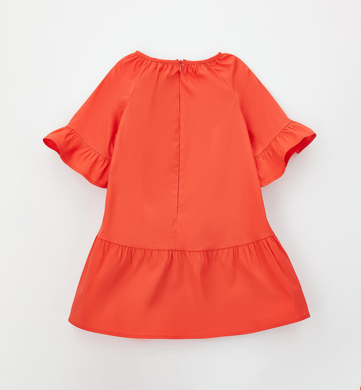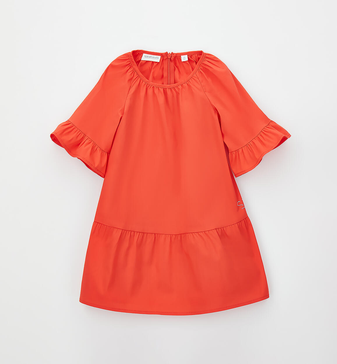 DESCRIZIONE Abito per bambina Sarabanda realizzato in popeline stretch. Apertura dietro con zip invisibile. Lunghezza sopra al ginocchio Composizione Colore CORALLO: 69%Cotone 27%Poliammide 4%Elastan
