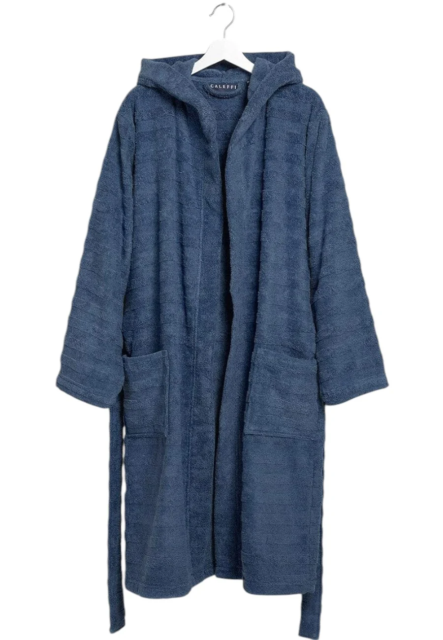 Accappatoio Caleffi con cappuccio e trama rigata in puro cotone idrofilo 100% cotone