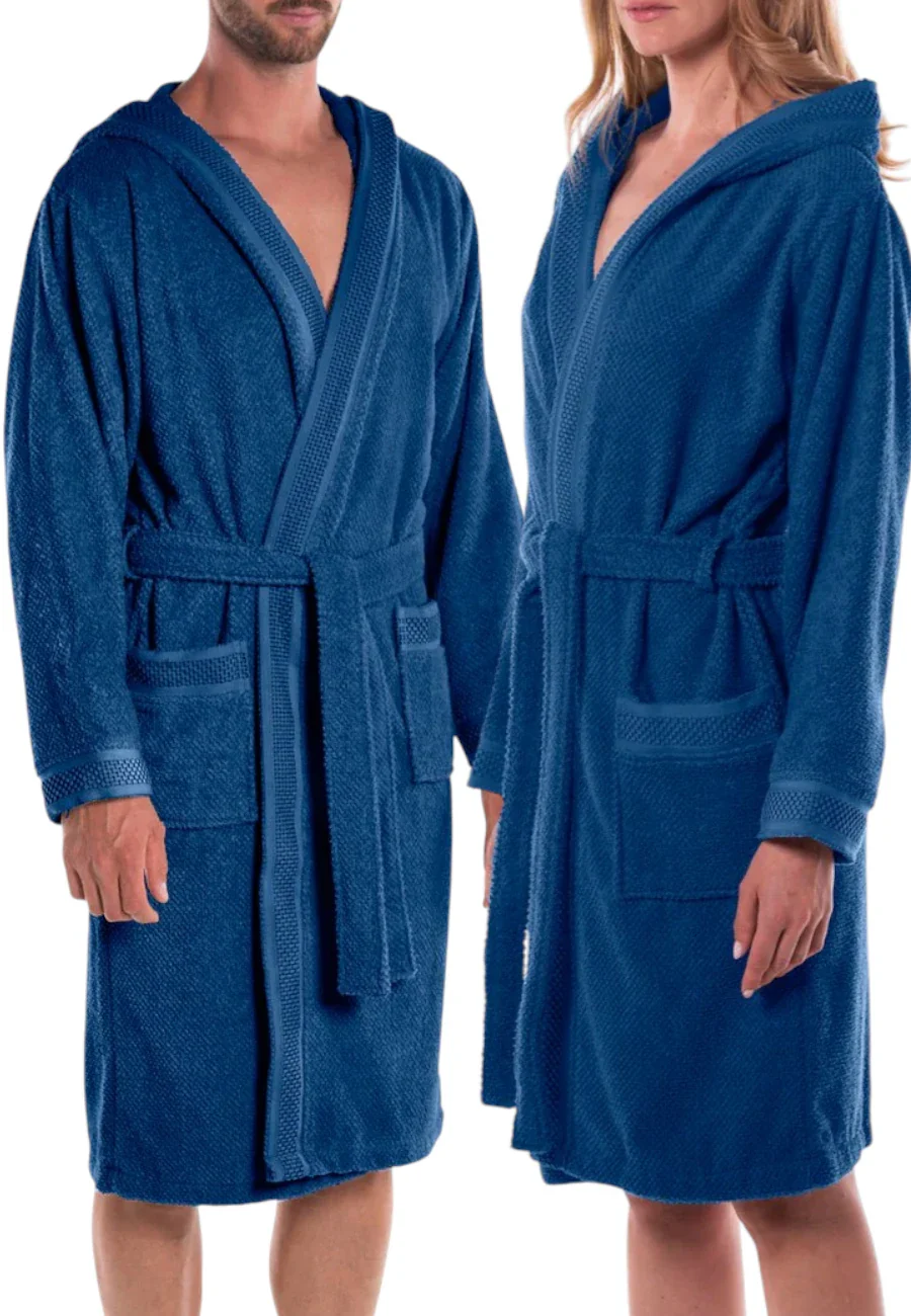 Accappatoio Caleffi con cappuccio e bordo jacquard in puro cotone idrofilo. 450gr/mq 100% cotone
