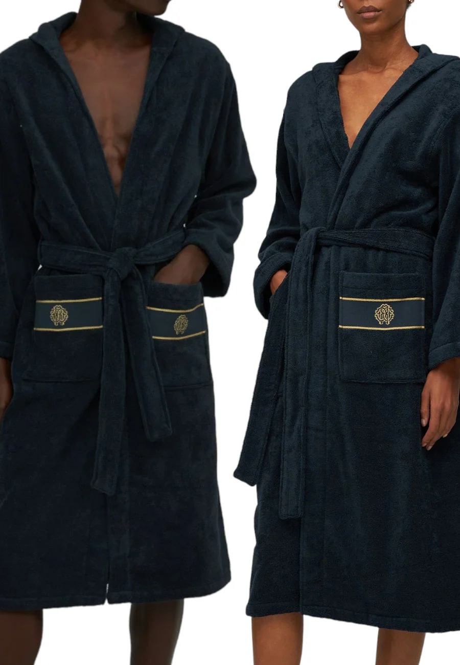 Accappatoio unisex rifinito con monogram RC color oro ricamato sulle tasche 100%cotone