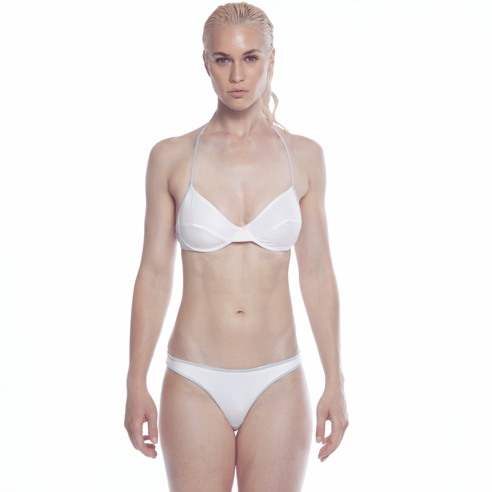 Il top a balconcino con ferretto è progettato per definire le forme con naturalezza, mentre lo slip brasiliano completa il look con un tocco audace e femminile.