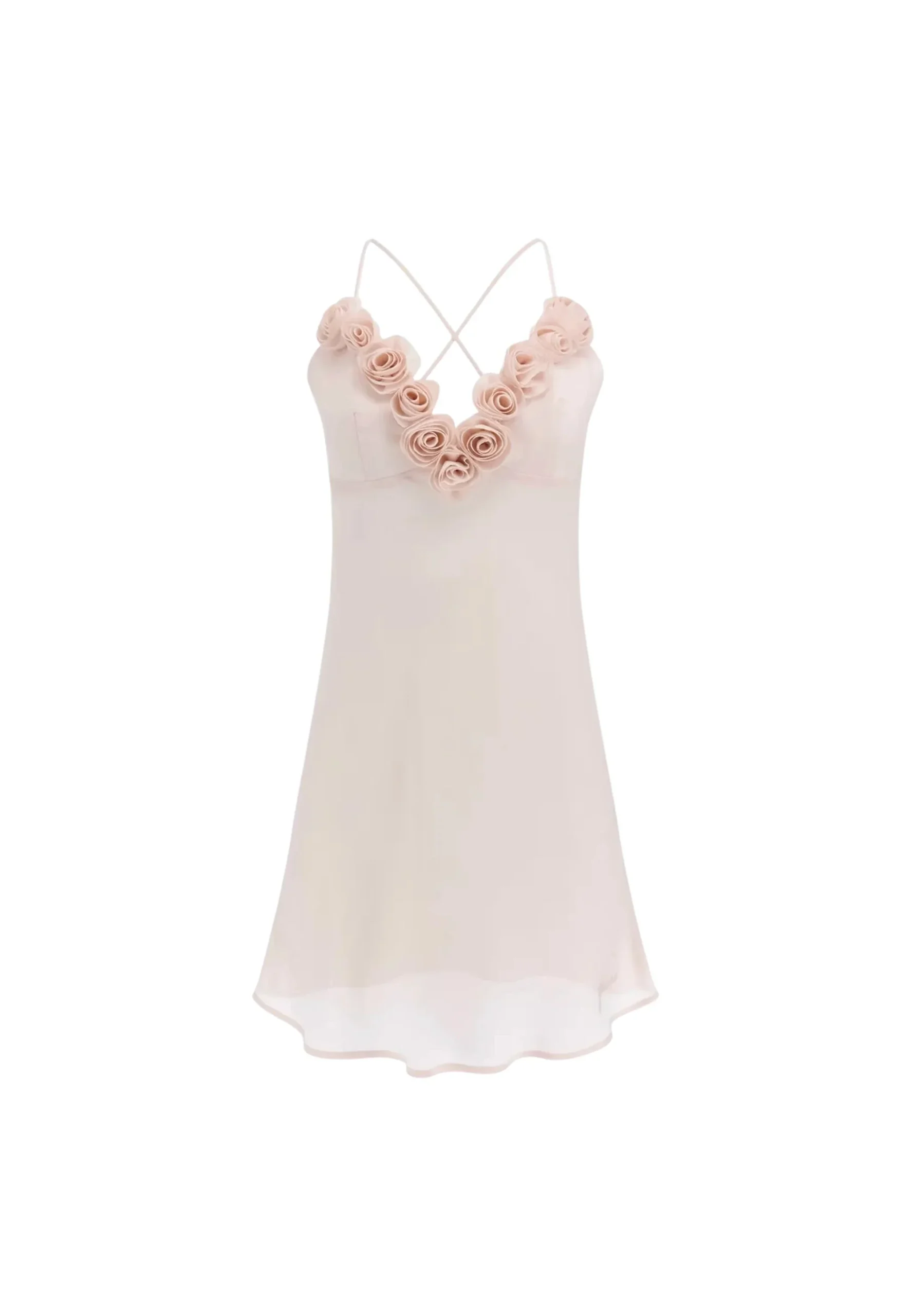 Fascinoso babydoll mini in georgette. Spalline incrociate aggiungono eleganza alla schiena. Scollo a V ornato di rose e logo ricamato che trasmette raffinatezza. Coppe integrate offrono comoditร . Ideale per serate romantiche