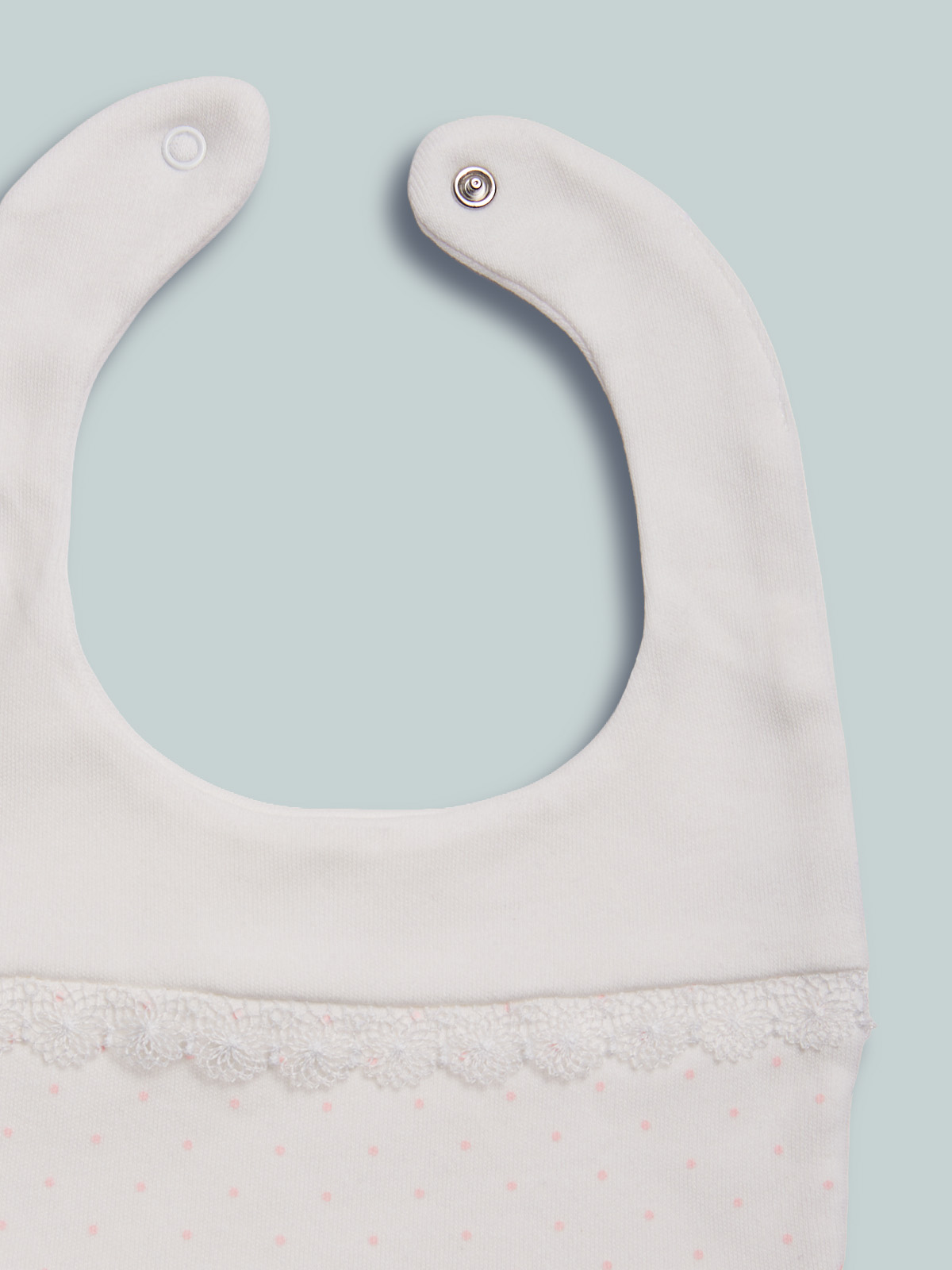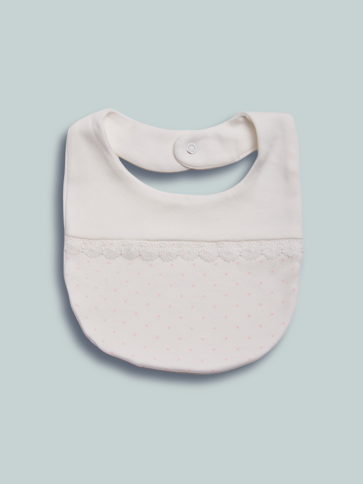 Bavetta in cotone con inserto in tulle ricamato. Elegante e delicata, ideale per completare con stile il look della tua neonata.