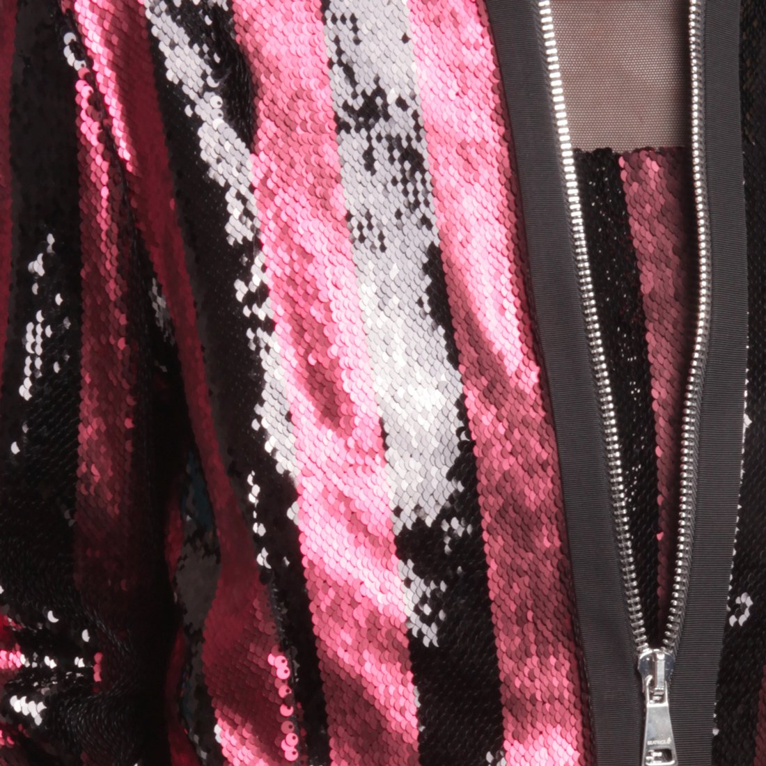 Elegante giacchino donna Beatrice B con ricca lavorazione in paillettes multicolor, zip frontale a doppio cursore, maniche lunghe e vestibilità moderna. Perfetto per look serali e raffinati.