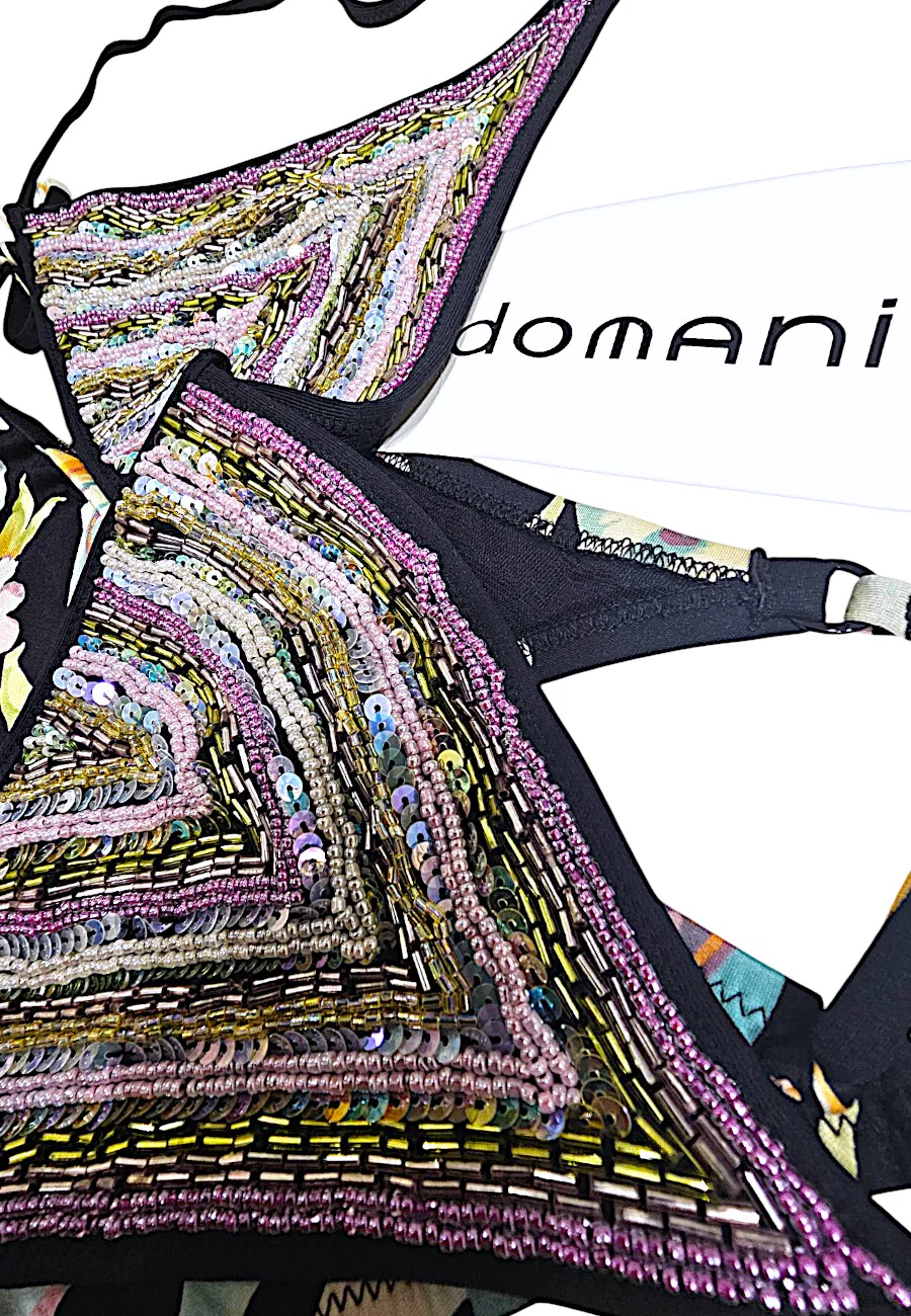 Bikini Domani composto da triangolo lavorato a interamente a mano slip con lacci . Made in Italy 80% poliammide 20% spandex