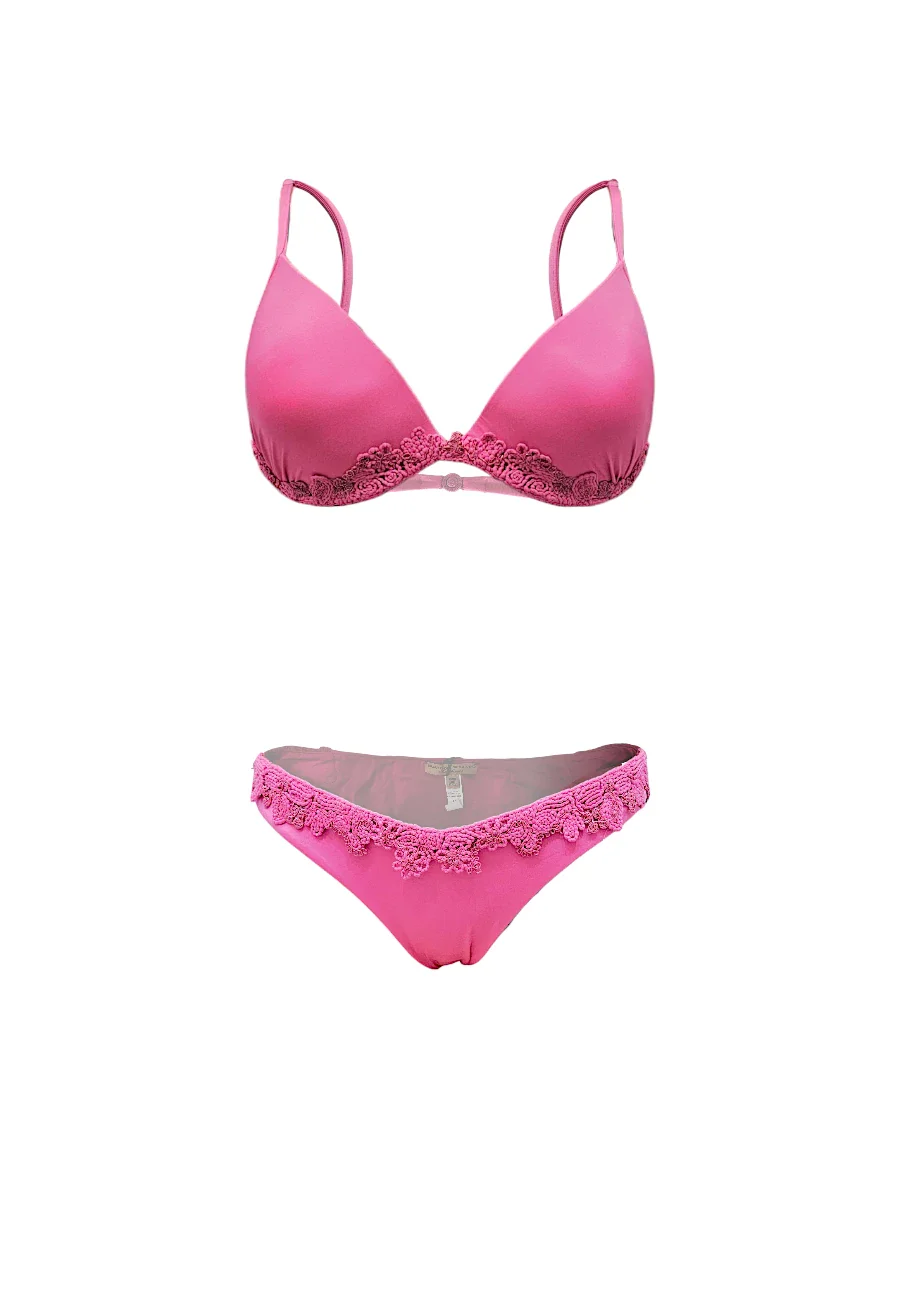 Pregiato bikini made in Italy by Ermanno Scervino composto da push up e slip con ricami artigianali impreziositi da dettagli in lurex.