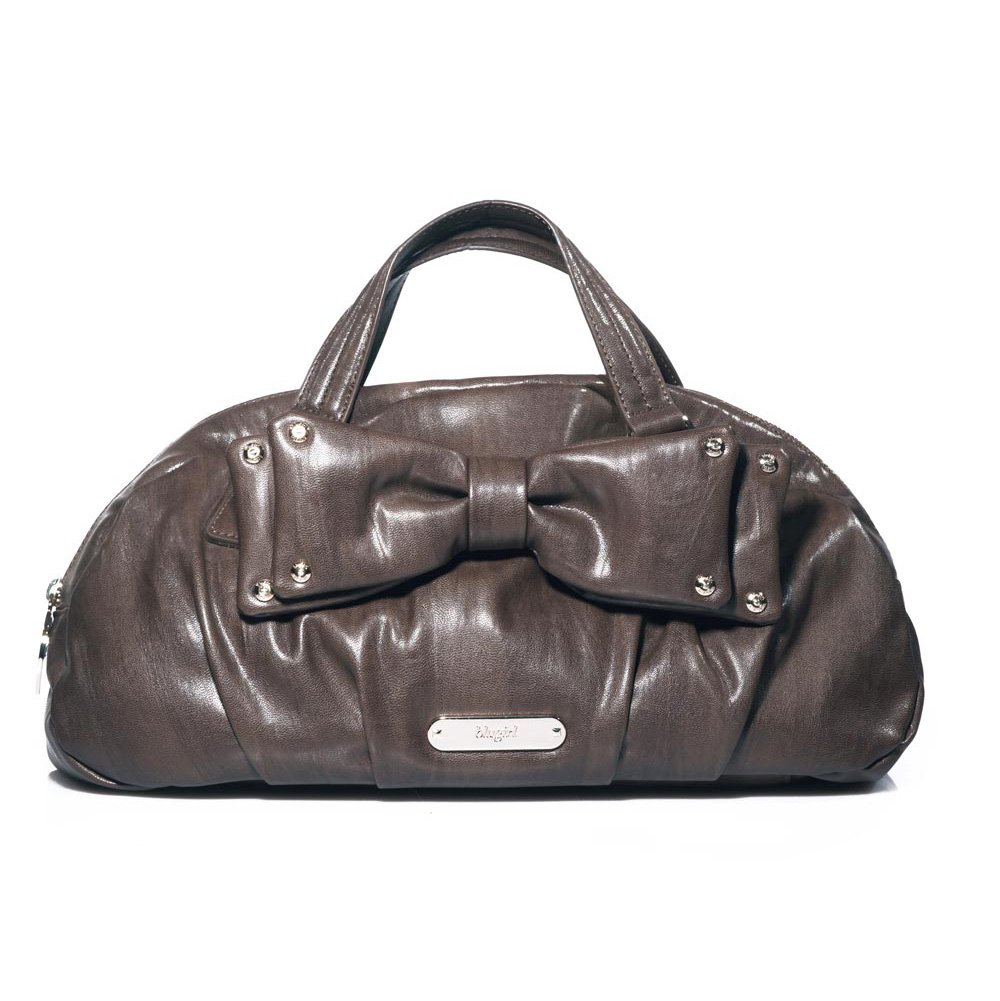 Borsa a mano BLUGIRL by Blumarine marrone in ecopelle con fiocco decorativo, chiusura zip e tracolla removibile.