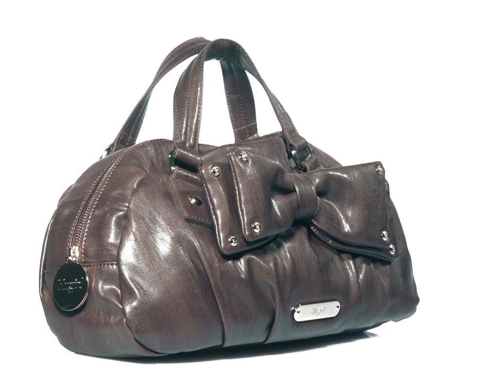 Borsa a mano marrone con fiocco e tracolla
