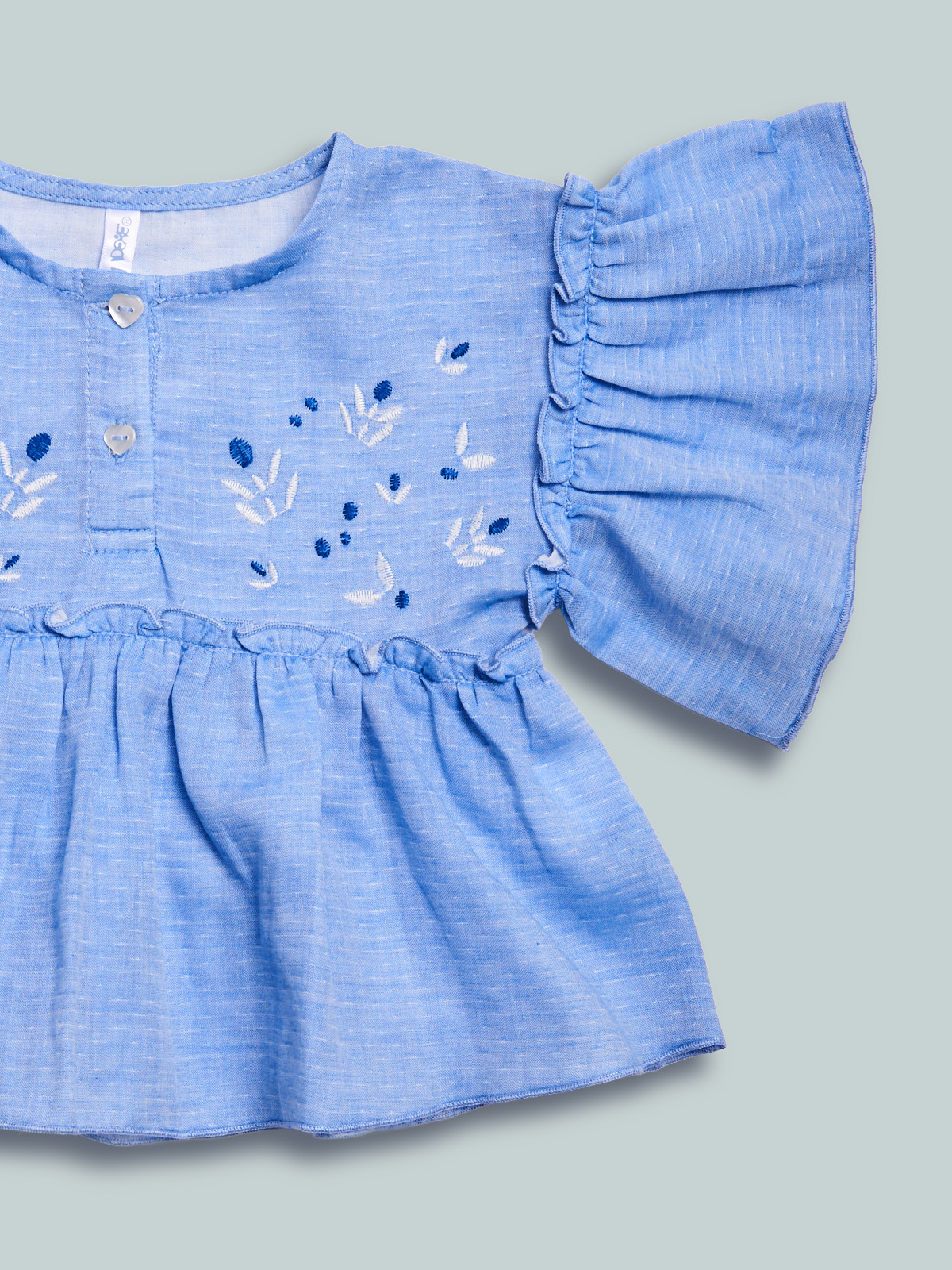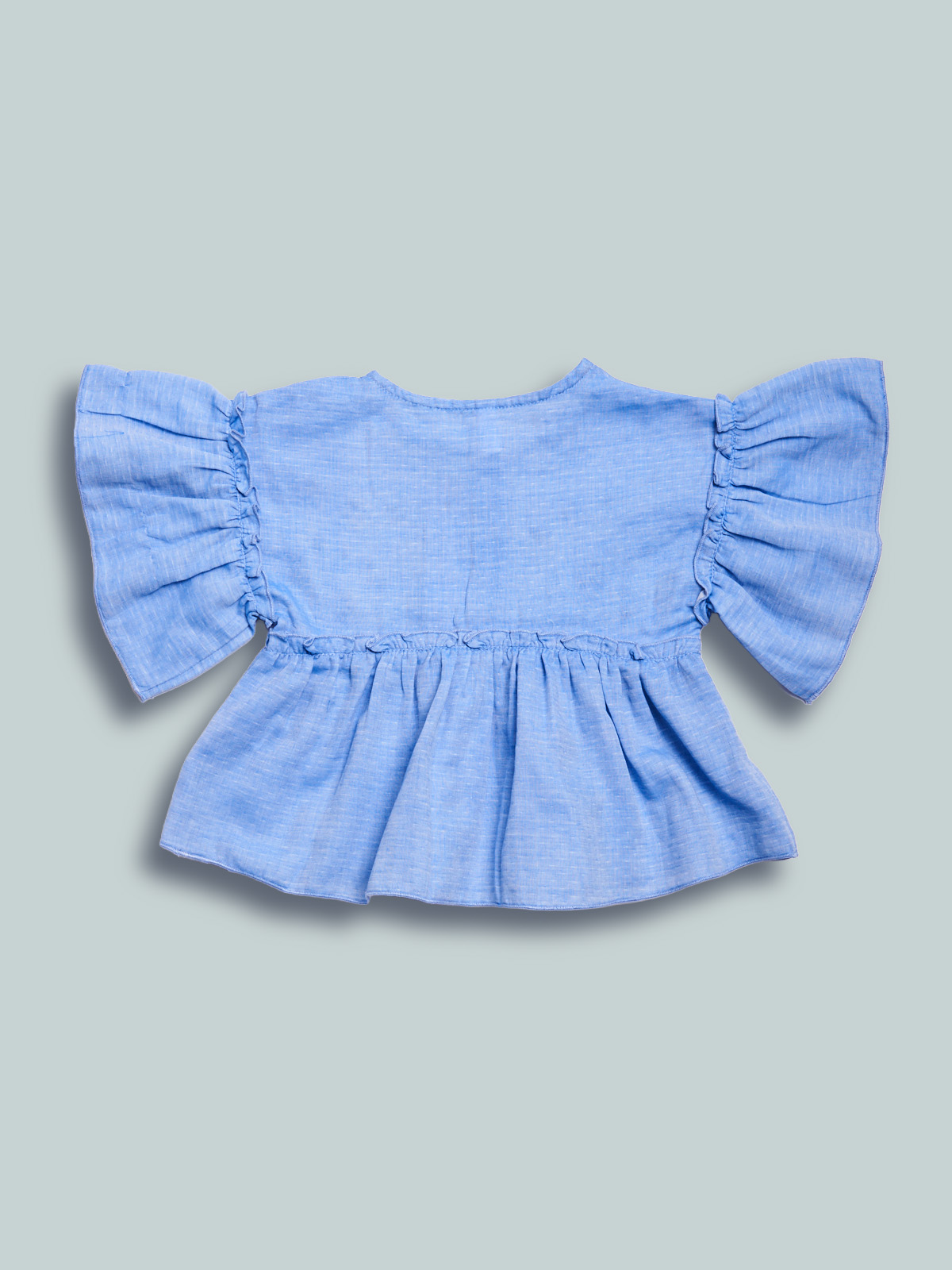 Blusa manica corta in morbido fil a fil con ricami davanti. Ampie maniche e arriccio in vita per ancora piรน femminilitร . Pratica apertura davanti per maggiore comoditร . Un capo sfizioso dall’anima bon ton.
