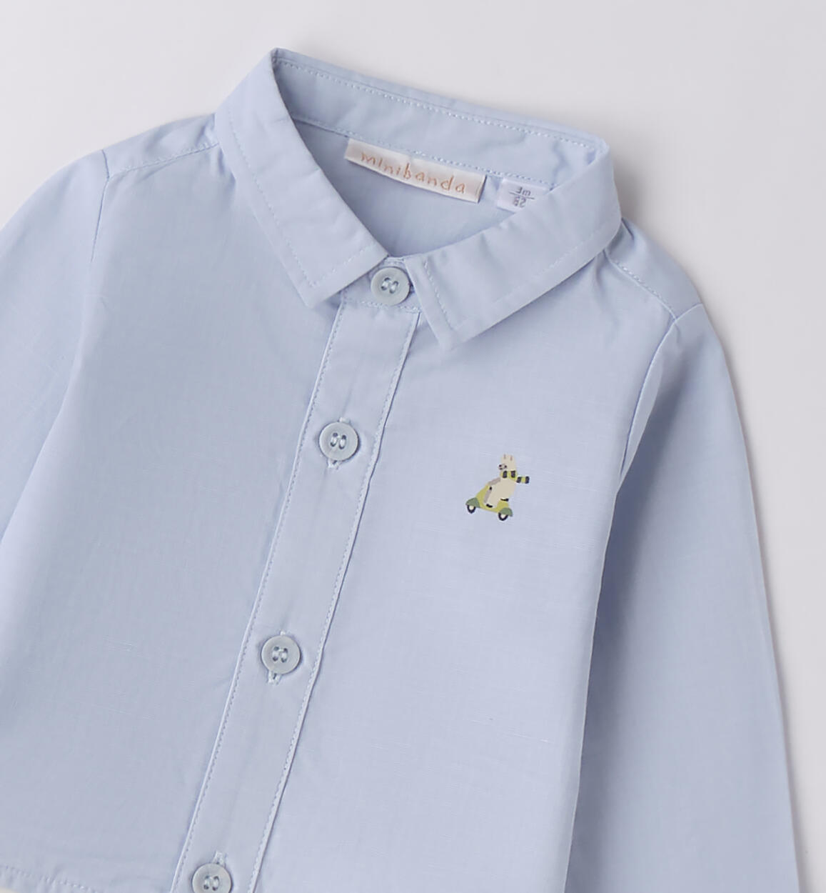 Camicia body per bimbo neonato Minibanda 1-24 mesi in fil a fil 100% cotone. Il modello presenta apertura nel sottogamba con bottoni a pressione per agevolare il cambio e la vestizione