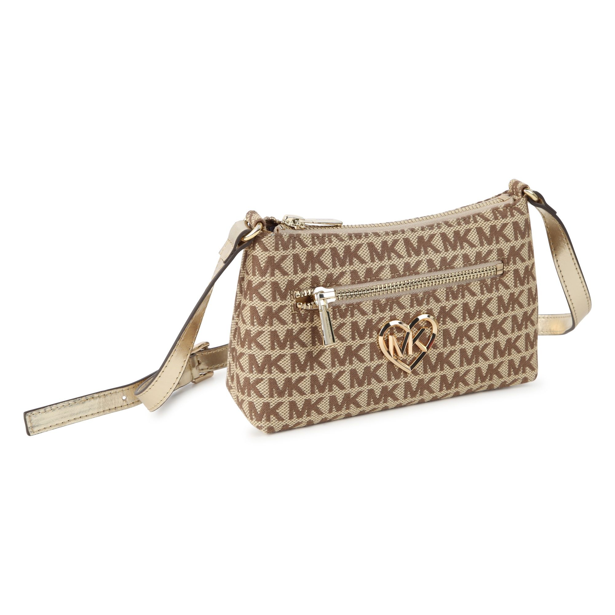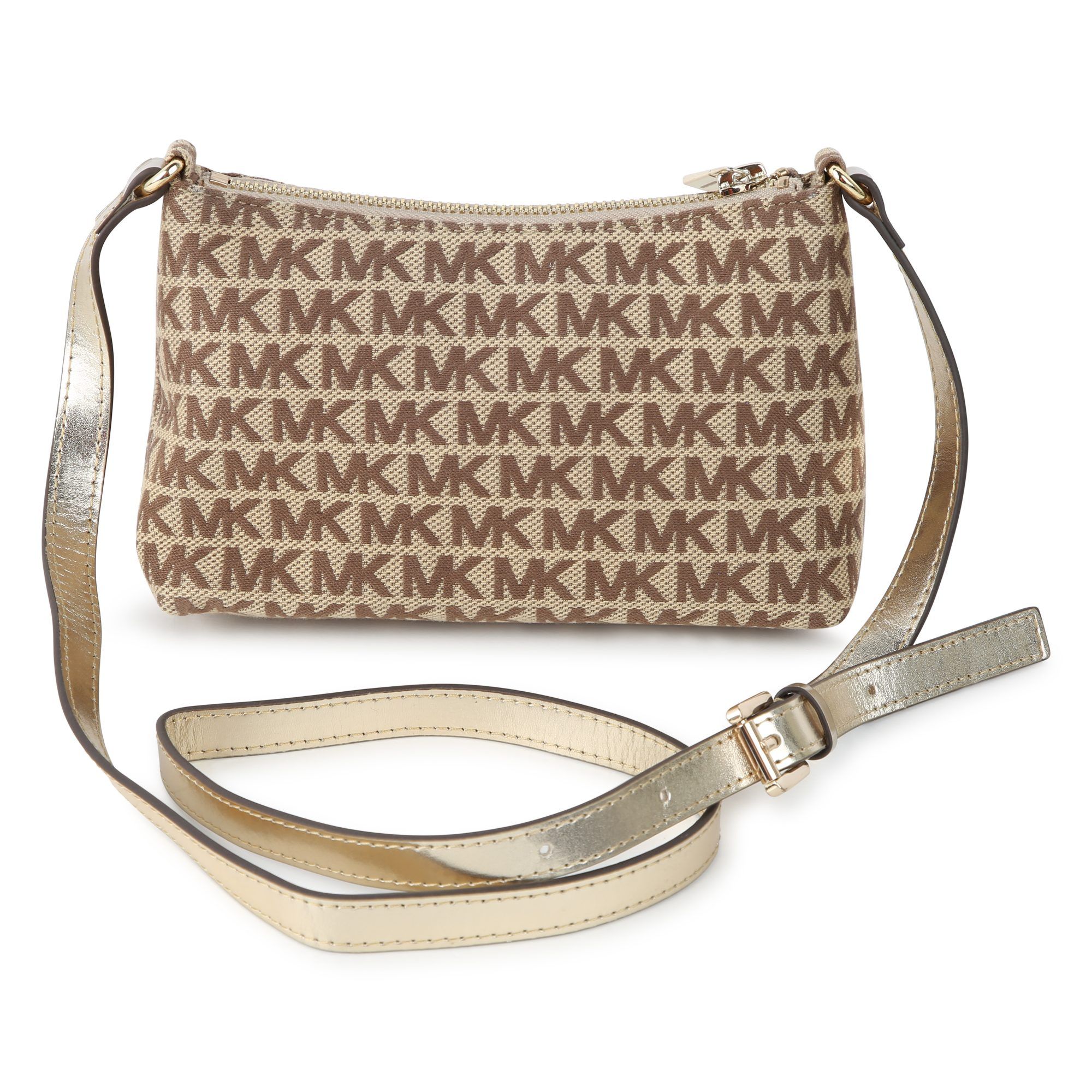 Borsa bambina e ragazza MICHAEL KORS beige, stampa con monogramma, applicazione frontale con logo, tasca frontale con zip, tracolla regolabile, scomparto unico.