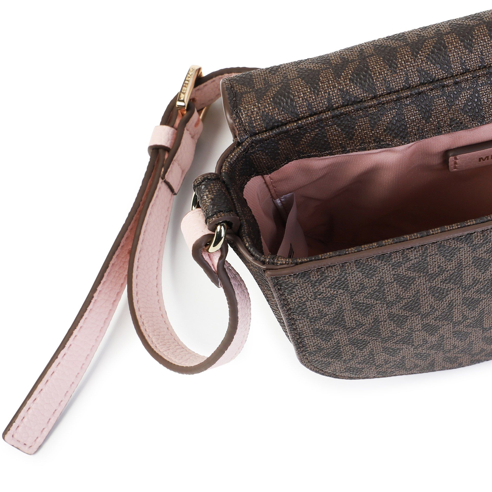 Borsa bambina e ragazza Michael Kors, borsa a mano piccola. Modello con logo all-over, realizzato in pelle sintetica, patella con chiusura magnetica, cinghia regolabile non staccabile per una vestibilitร migliore, tasca interna scorrevole, dettaglio decorativo sul davanti.