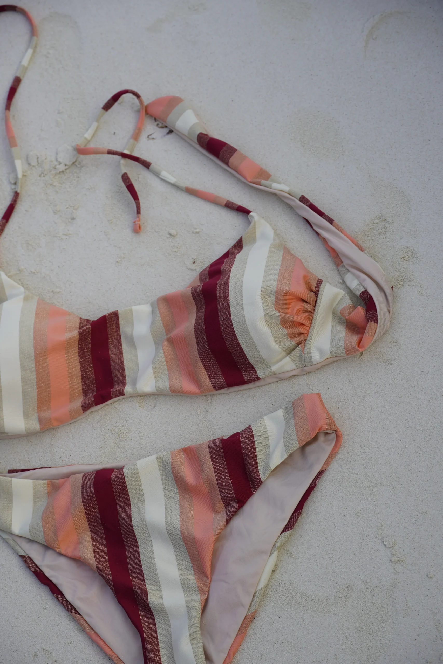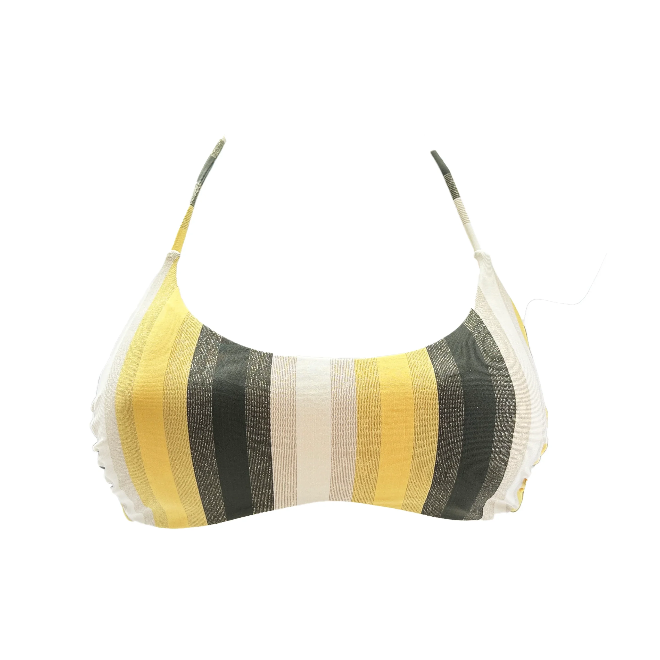 Brassiere imbottita con coppette estraibili, ideale per accogliere seni abbondanti. Righe Burgundy e righe Verde. Chiusura sul retro con fiocco, si adatta perfettamente al tuo torace. Lacci al collo sottili 80% Poliammide – 20% Elastan