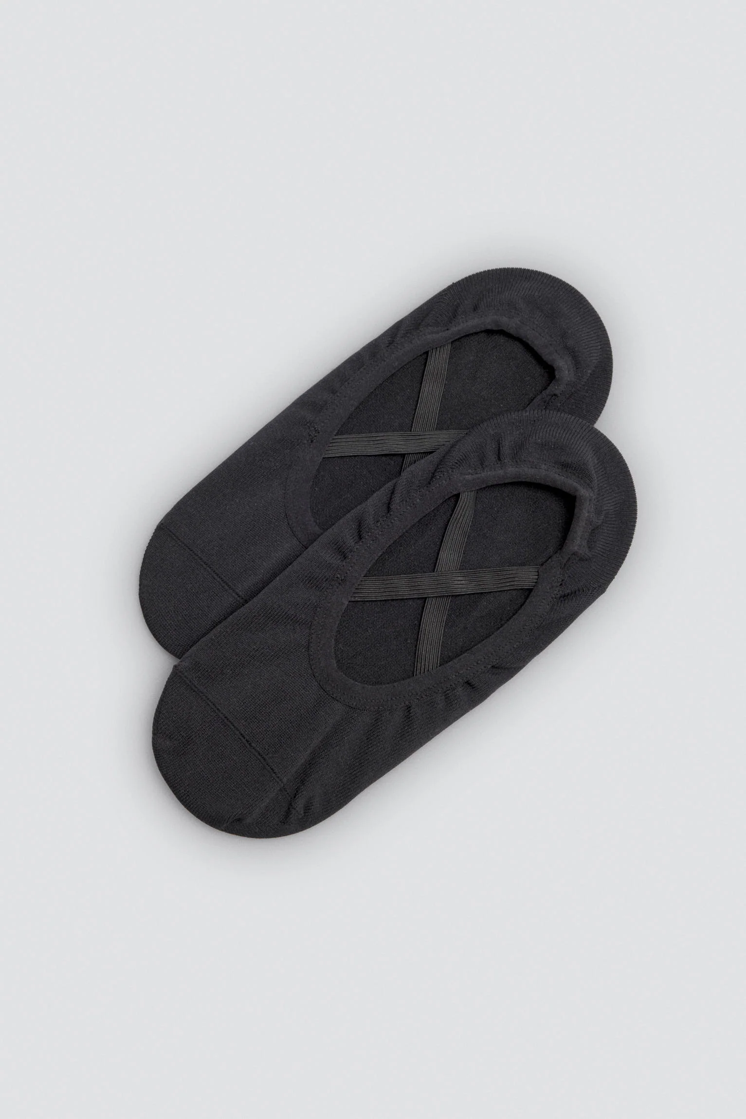 Calzini sportivi antiscivolo con fasce incrociate e design tecnico, ideali per yoga, pilates, barre, danza classica e allenamenti a terra. La suola in silicone impedisce lo scivolamento su tappetini o superfici lisce, migliorando la stabilitร e l’equilibrio durante le posizioni e le transizioni. Le fasce incrociate nella parte superiore mantengono i calzini in posizione e offrono supporto senza limitare i movimenti.