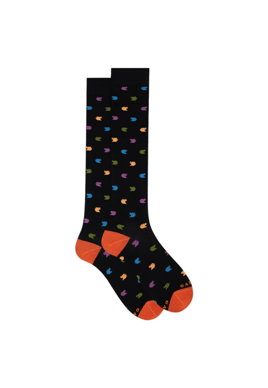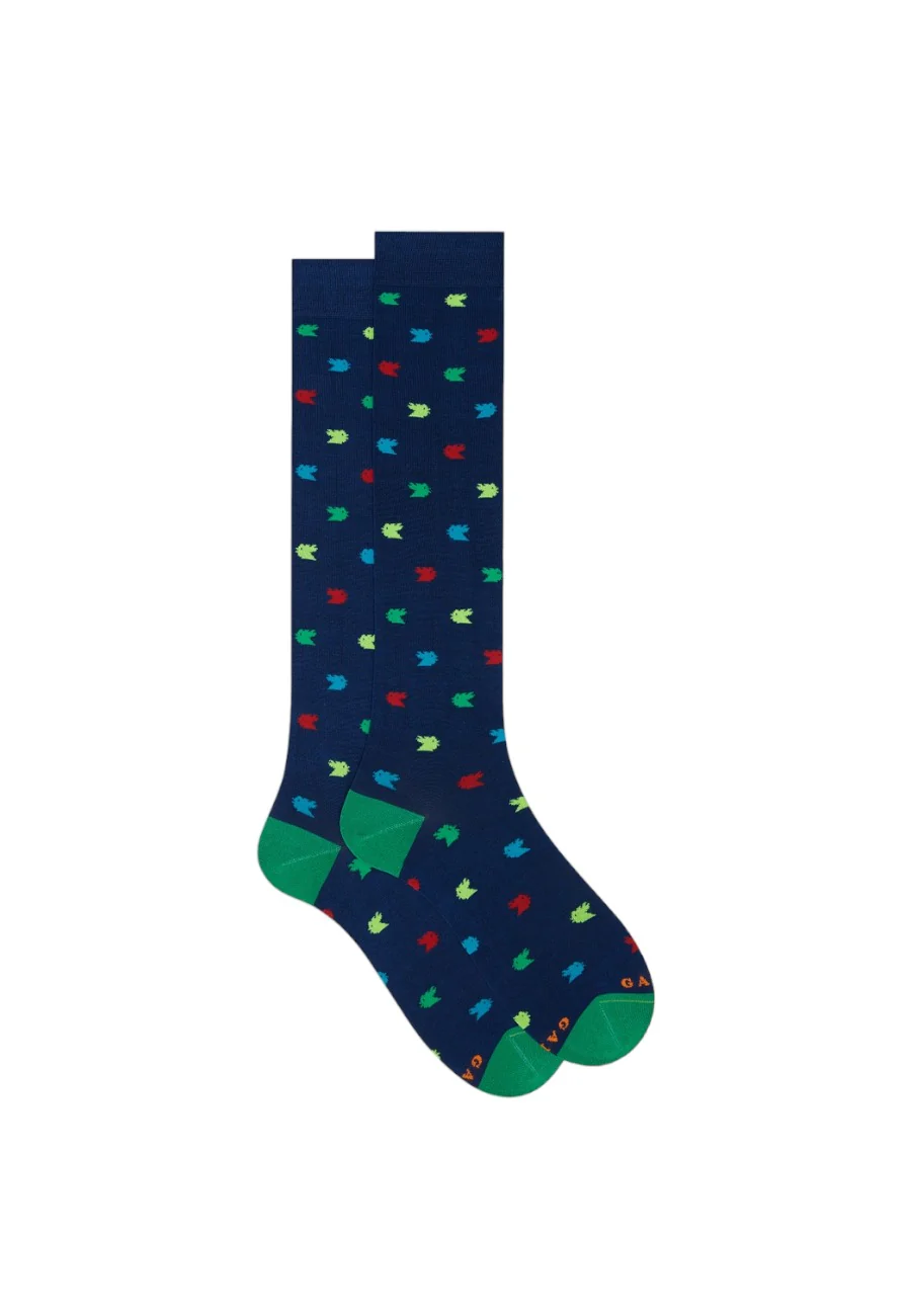 Calzini da uomo in cotone leggerissimo, realizzati in Italia. Molto morbidi al tatto, creati per chi non rinuncia ad un dettaglio di stile. L’iconica fantasia con piccoli galletti colorati, nei toni multicolor, li rende originali ma riconoscibili.