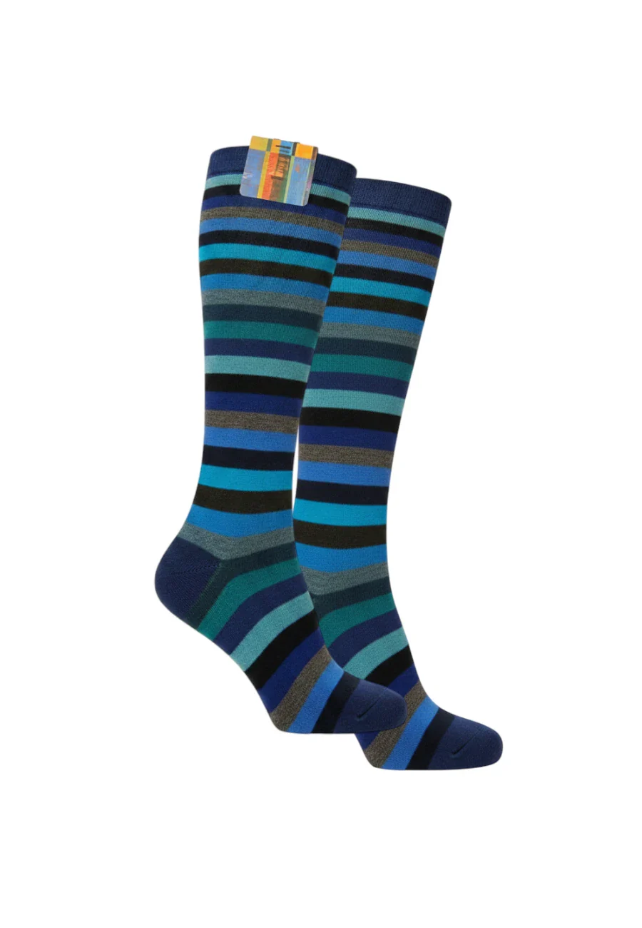 Calze lunghe da uomo in cotone, realizzate in Italia. Incredibilmente morbide al tatto, create per una persona dinamica che non rinuncia ad un dettaglio di stile. La fantasia a righe pari nei fondi misti le rende originali ma riconoscibili.