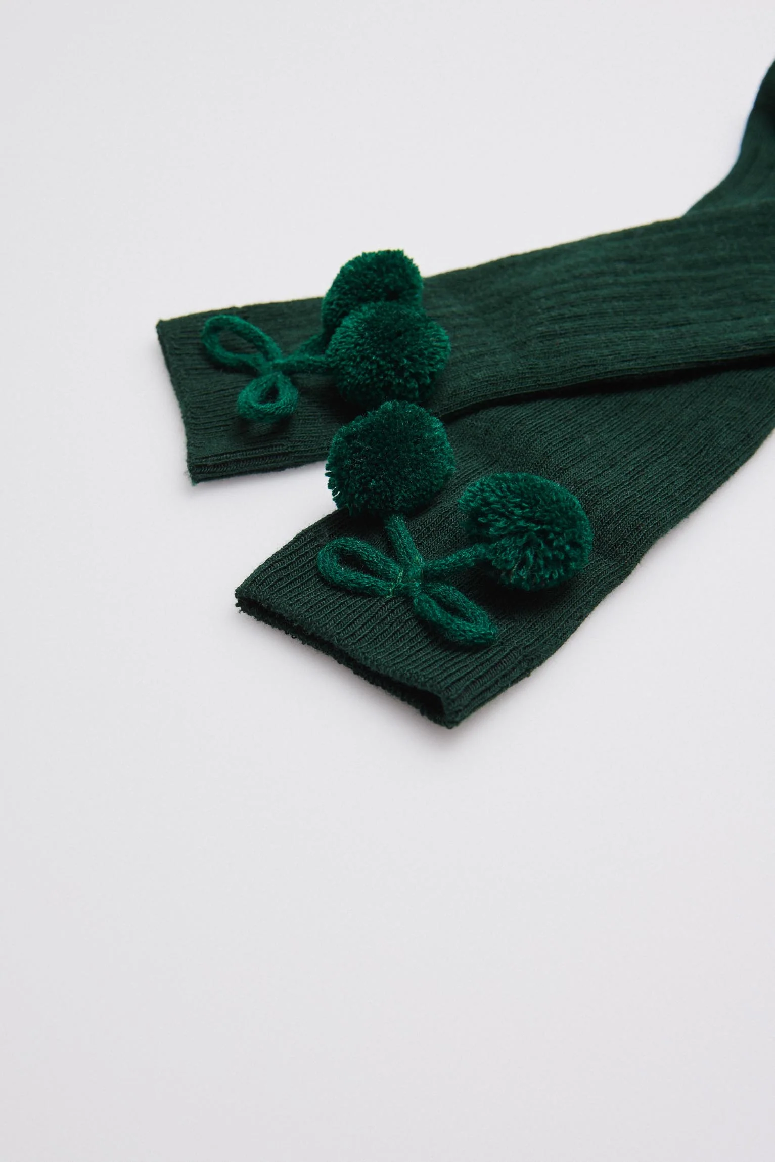 Calzini lunghi con pompon verde bottiglia