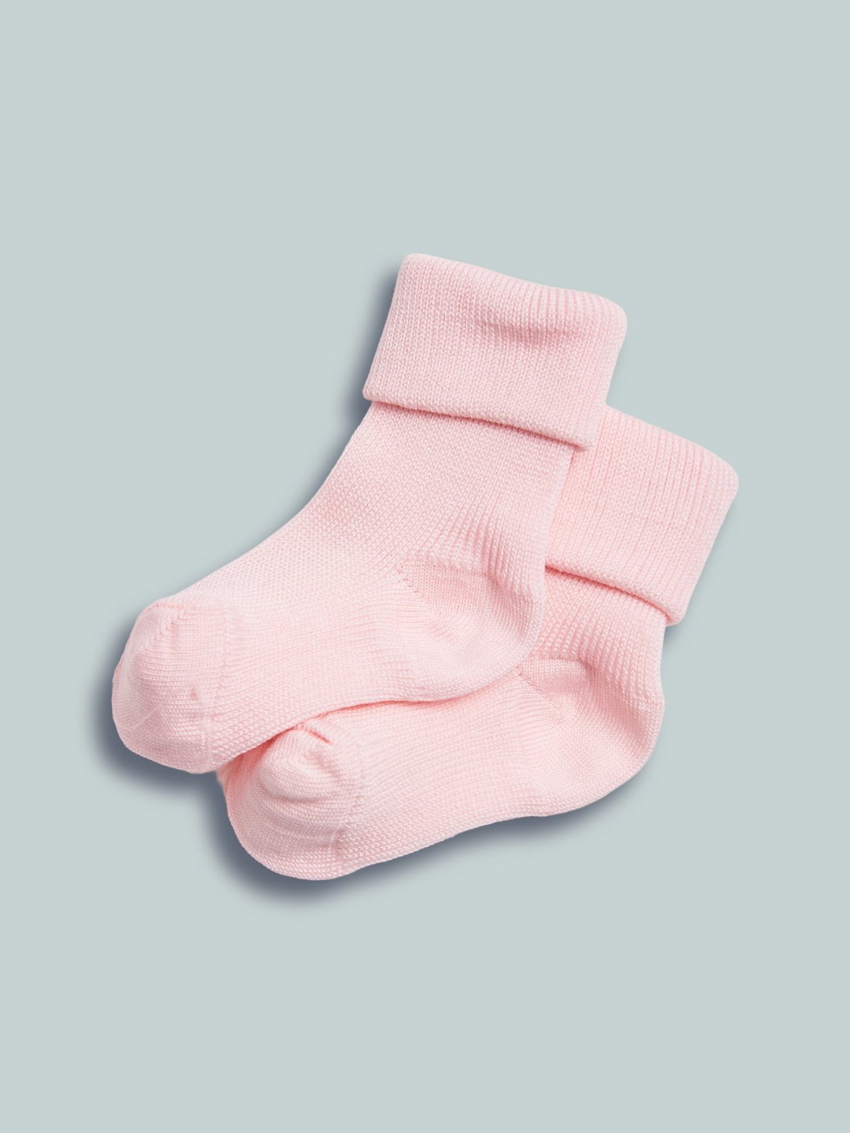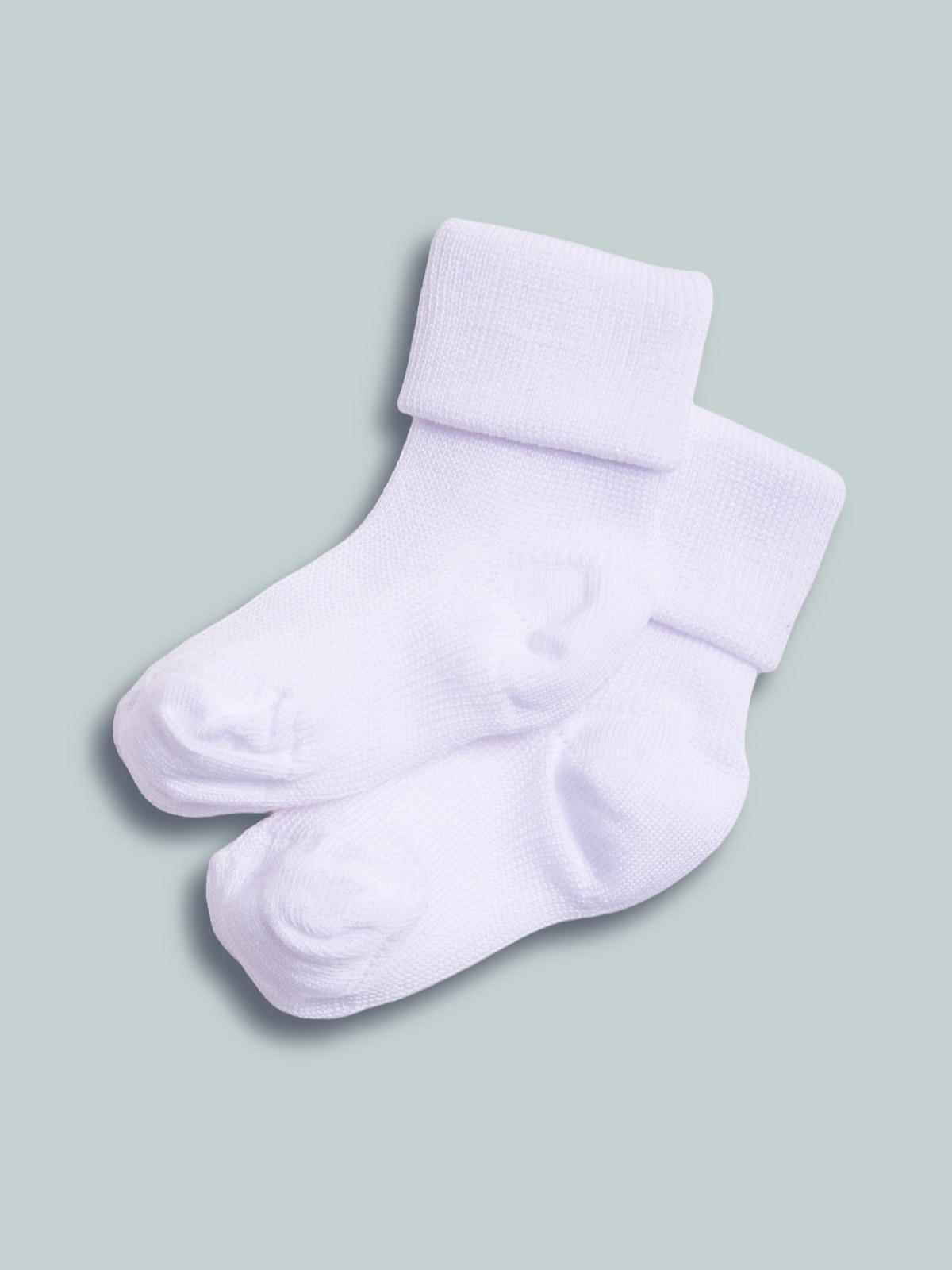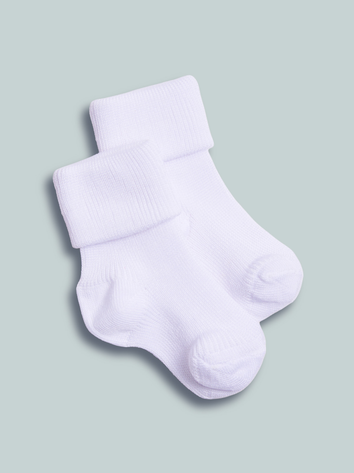 Calzino primi giorni in costina con risvolto che non stringe, ideale per chi ha la pelle piรน delicata.