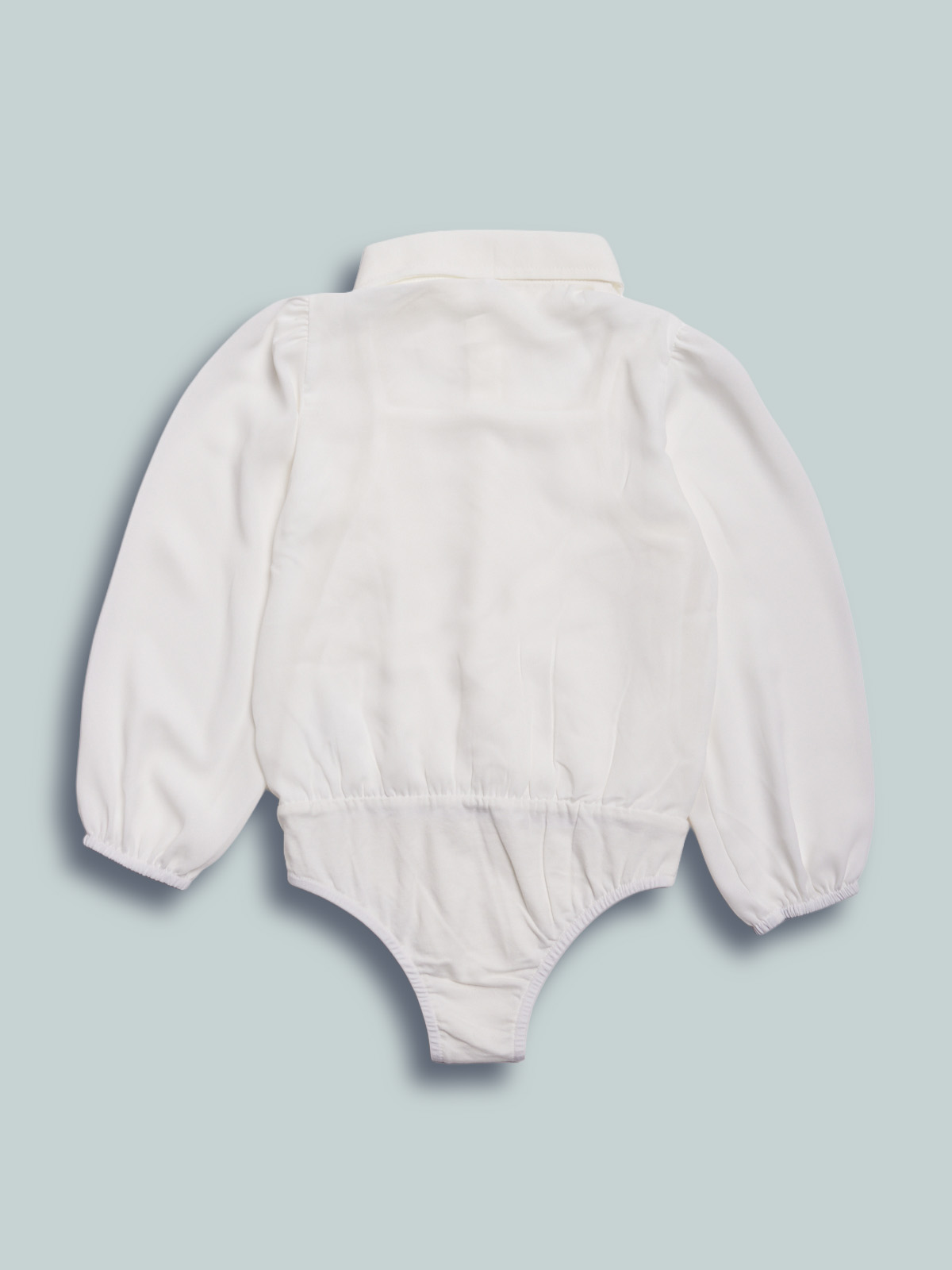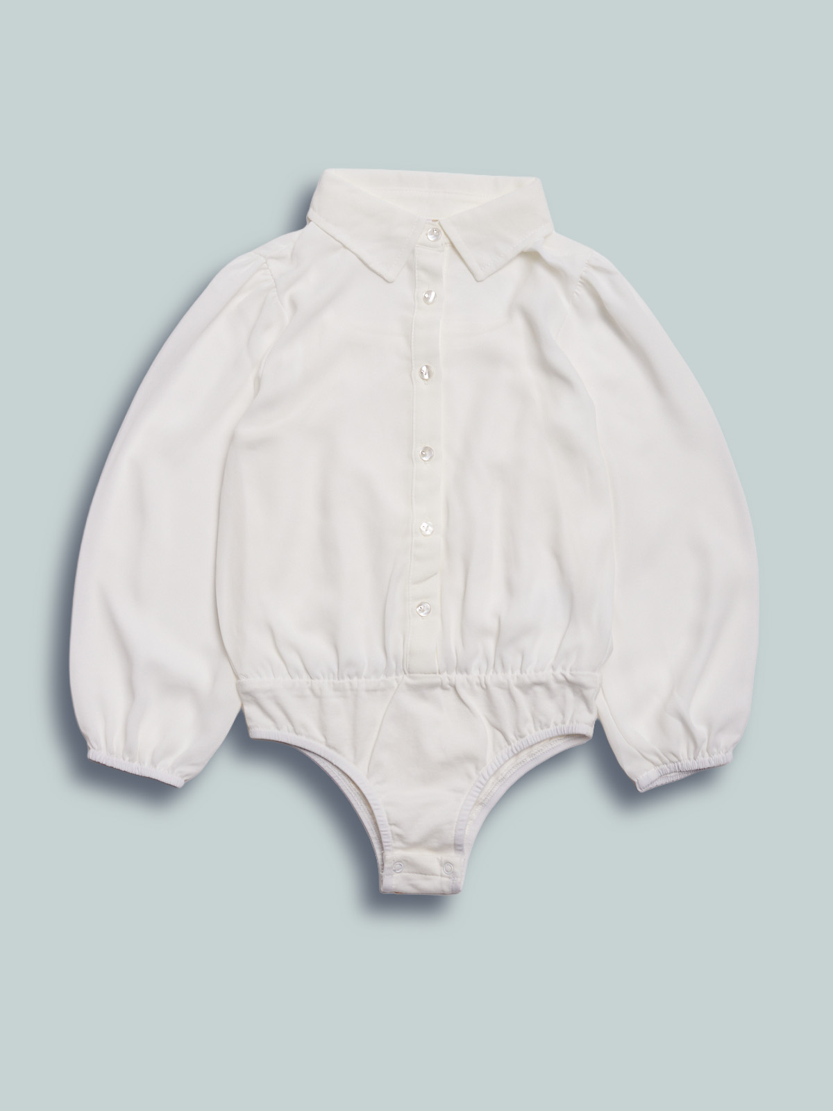 Camicia a body manica lunga in morbido voile con canotta in cotone elasticizzato. Un capo dal look femminile e delicato.