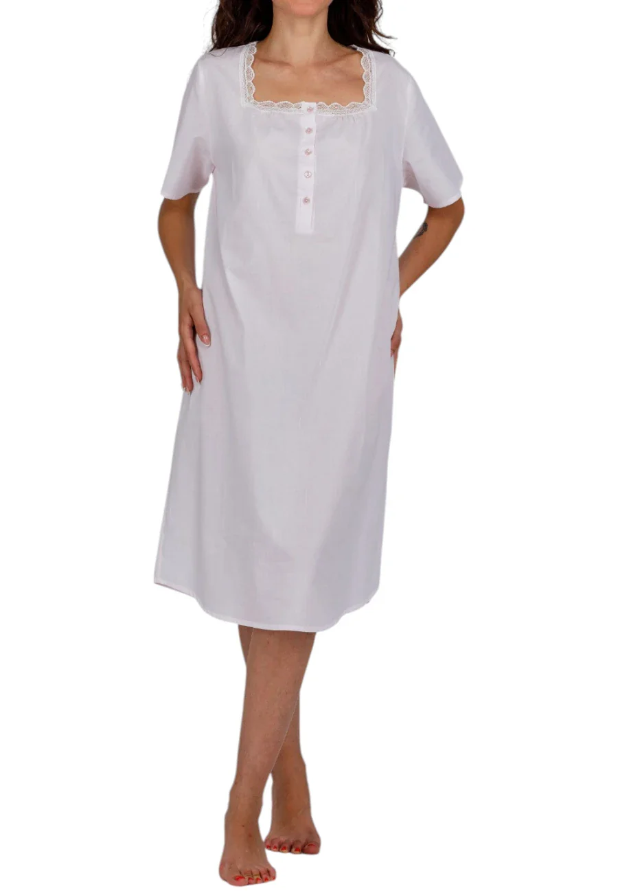 Camicia da notte con drappeggio e profili in pizzo Made in Italy 100% cotone