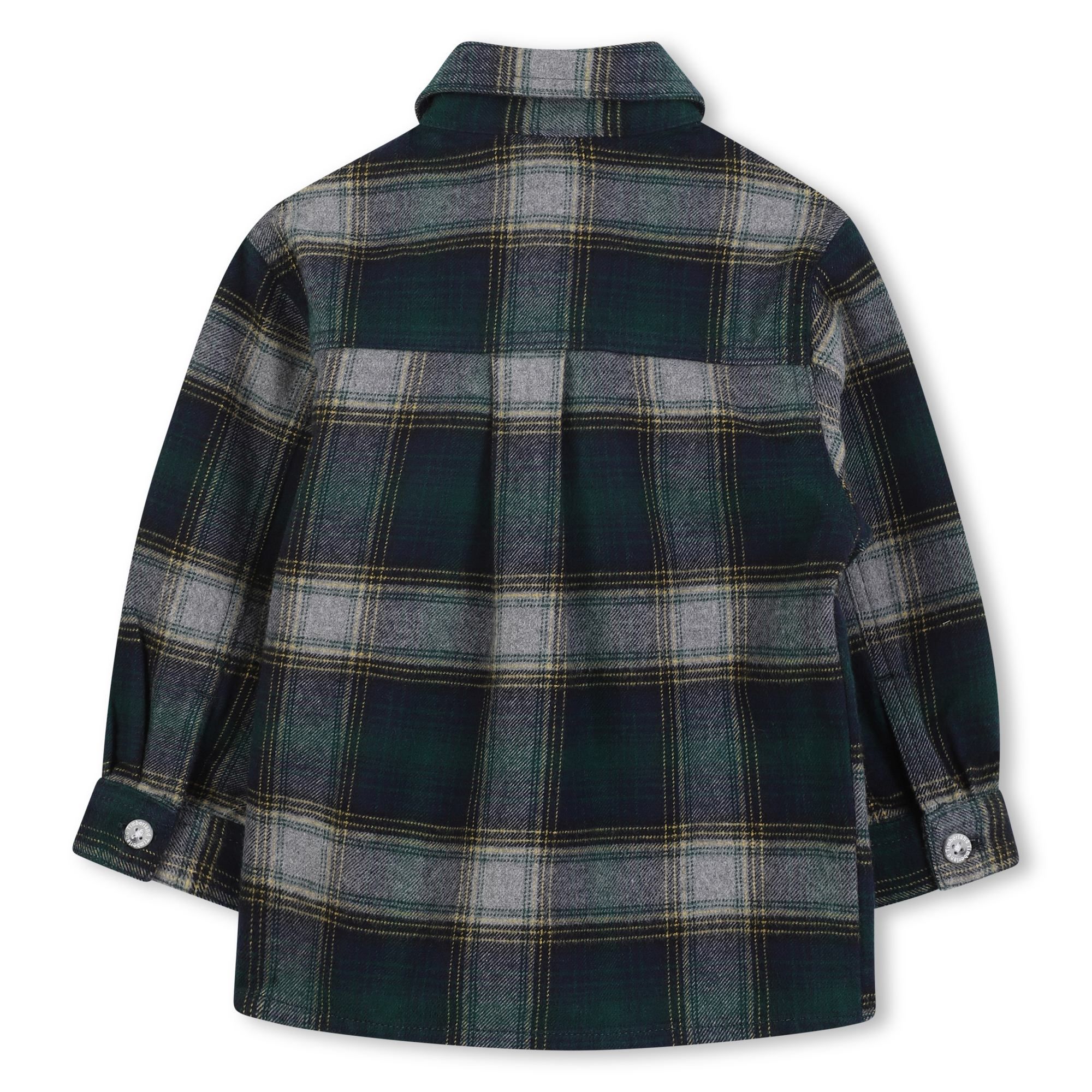 Camicia verde a quadri per neonati e bambini, con maniche lunghe, colletto a punta e chiusura frontale con bottoni. ร decorata con patch logato sulla parte anteriore. Composizione: 100%cotone.
