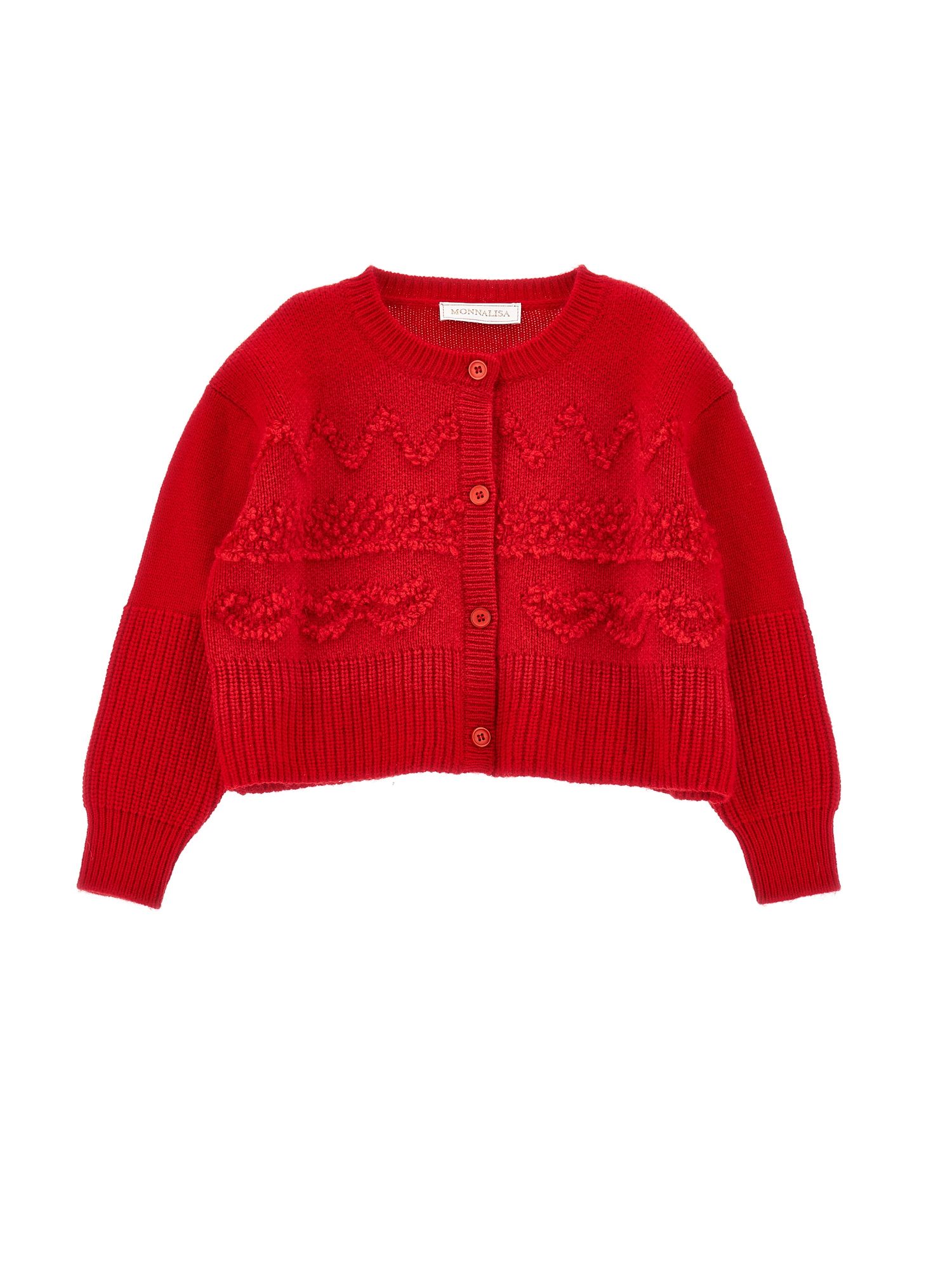 – Cardigan Monnalisa – Colore Rosso – Stagione Autunno/Inverno – Vestibilitร Regolare – Composizione Cotone – Cod. Articolo 19F801-6061-0043