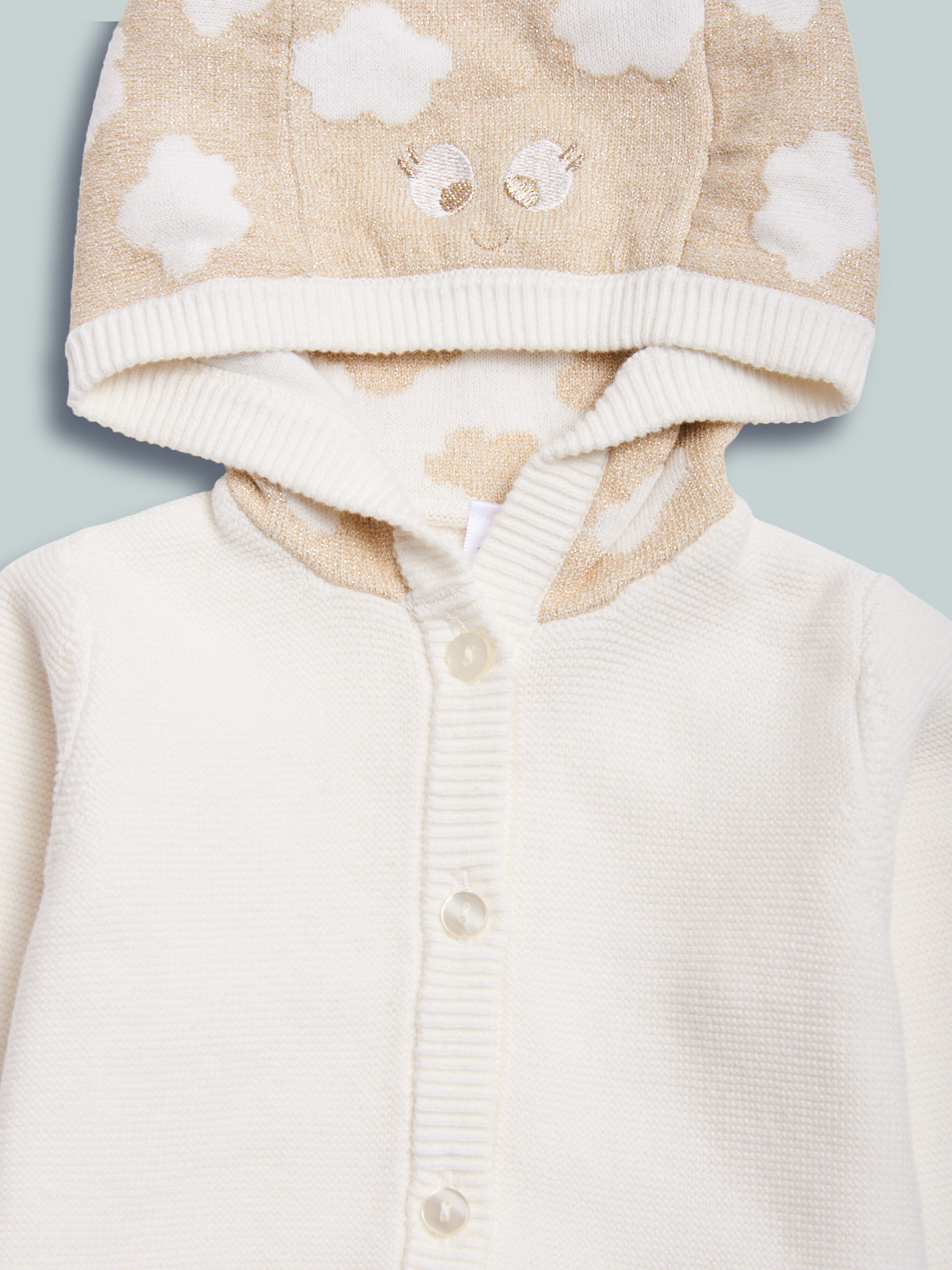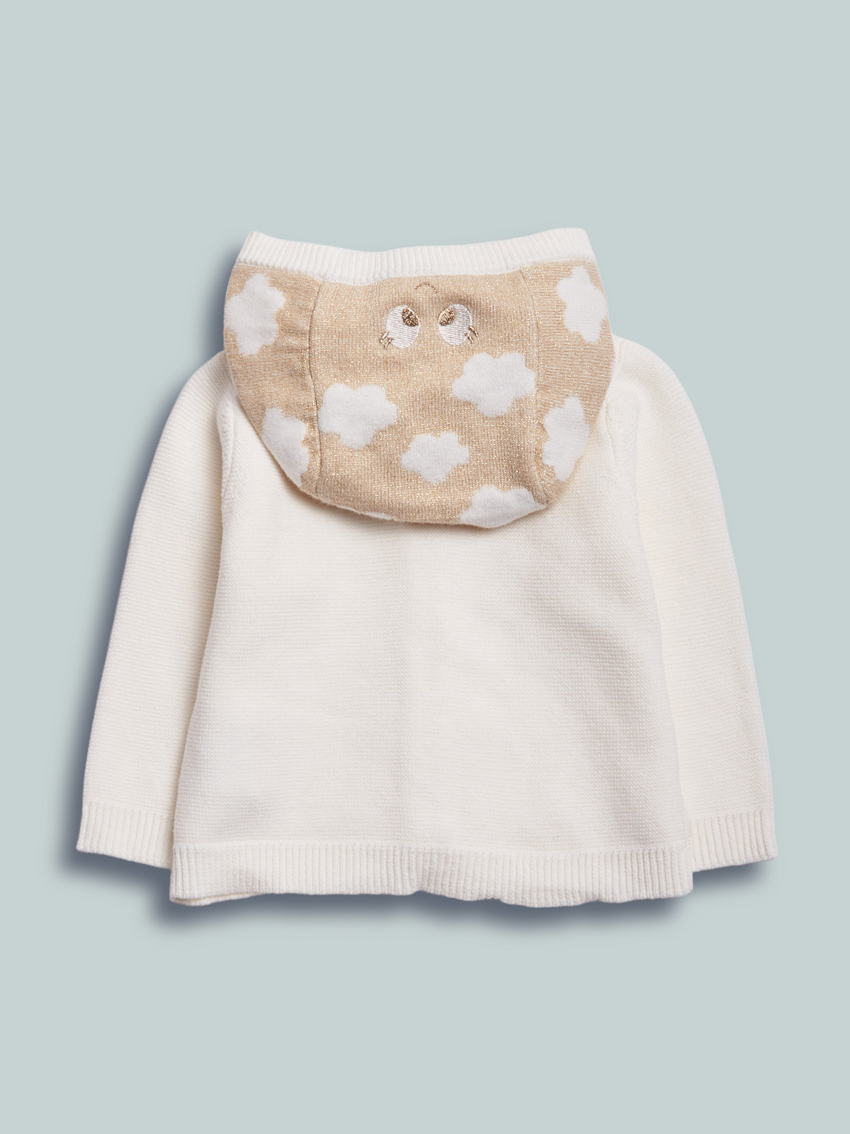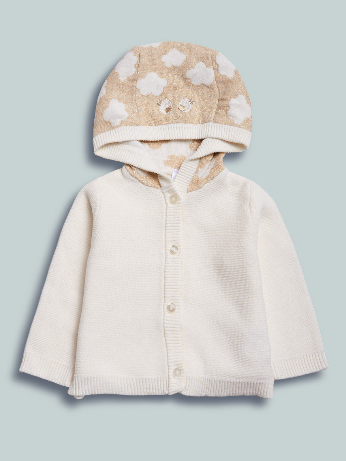 Cardigan in morbida maglia misto cotone. Apertura frontale con bottoncini. Simpatico musetto sul cappuccio. Comfort e femminilitร allo stesso momento.