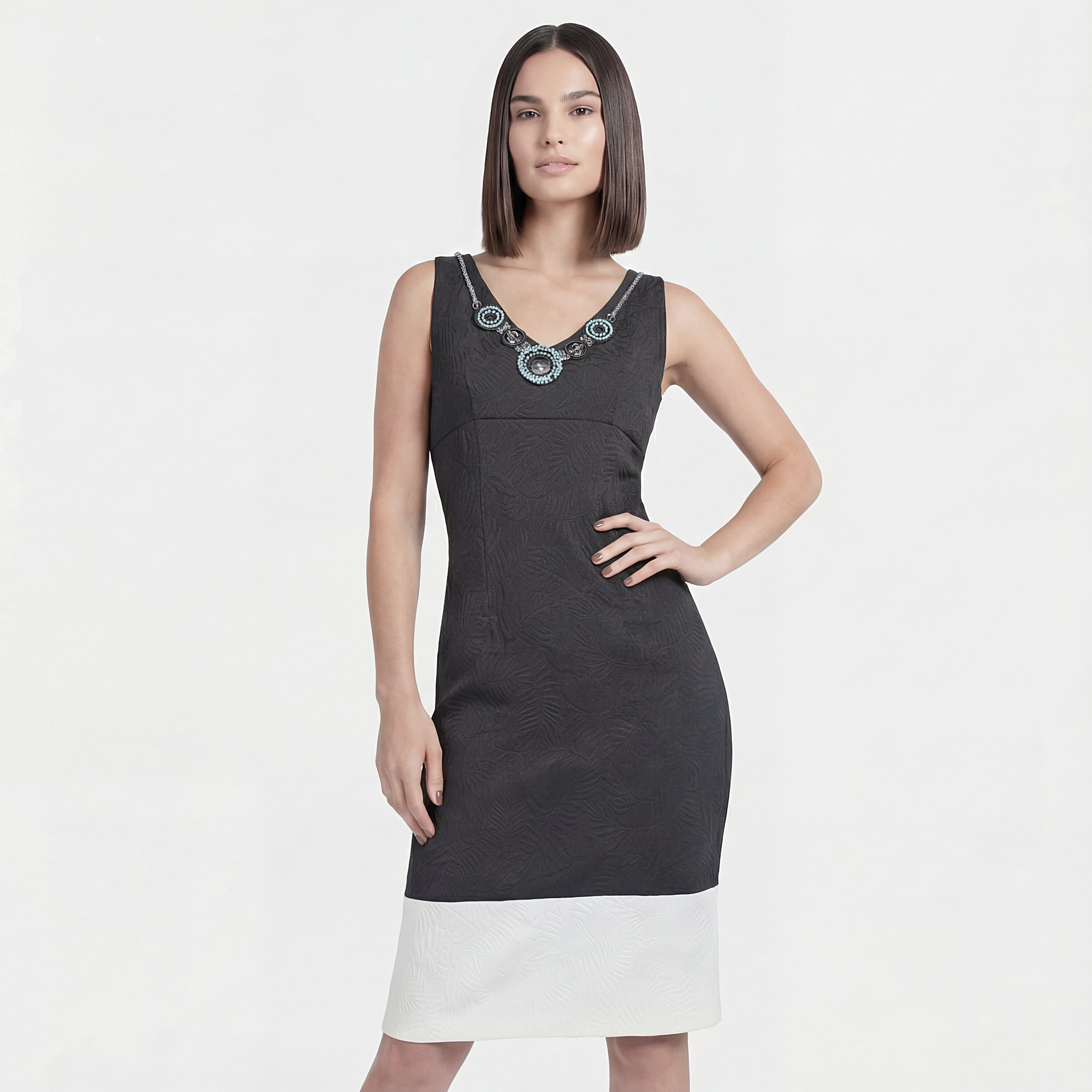 CLIPS – Abito Donna Bicolore Ricamato a Mano con Sottoveste | M