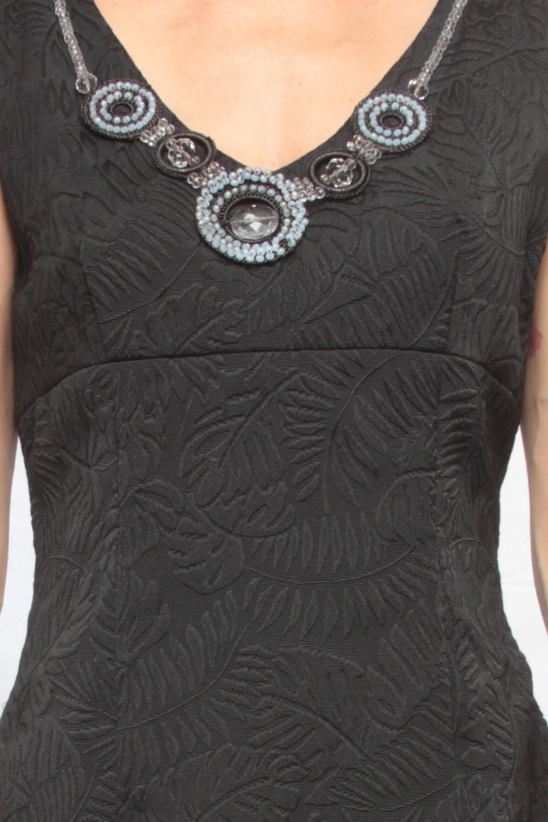 Elegante e sartoriale, Â presenta un raffinato design bicolore con un prezioso ricamo a mano sullo scollo a V. Caratterizzato da una texture jacquard floreale, questo abito lungo 102 cm include una pratica sottoveste e una chiusura con zip posteriore. Disponibile nella taglia M (corrispondente alla IT 44), perfetto per occasioni formali e cerimonie.