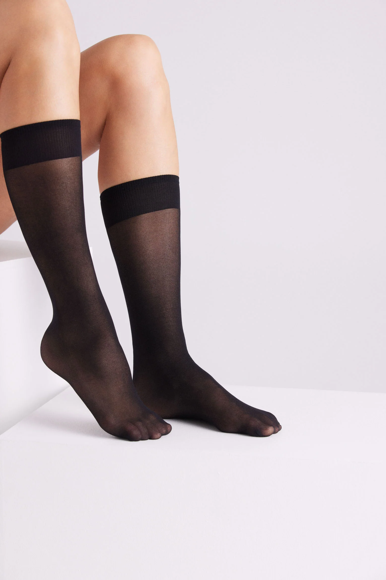 Minicalza 17 DEN. Polsino anti-pressione e punta invisibile, comfort e invisibilitร garantiti. Non cade, non opprime. Composizione: 100% Poliammide