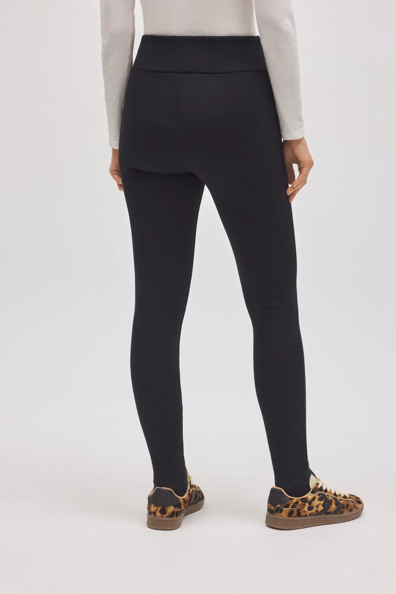 - Vestibilitร skinny: aderisce perfettamente alla gamba.