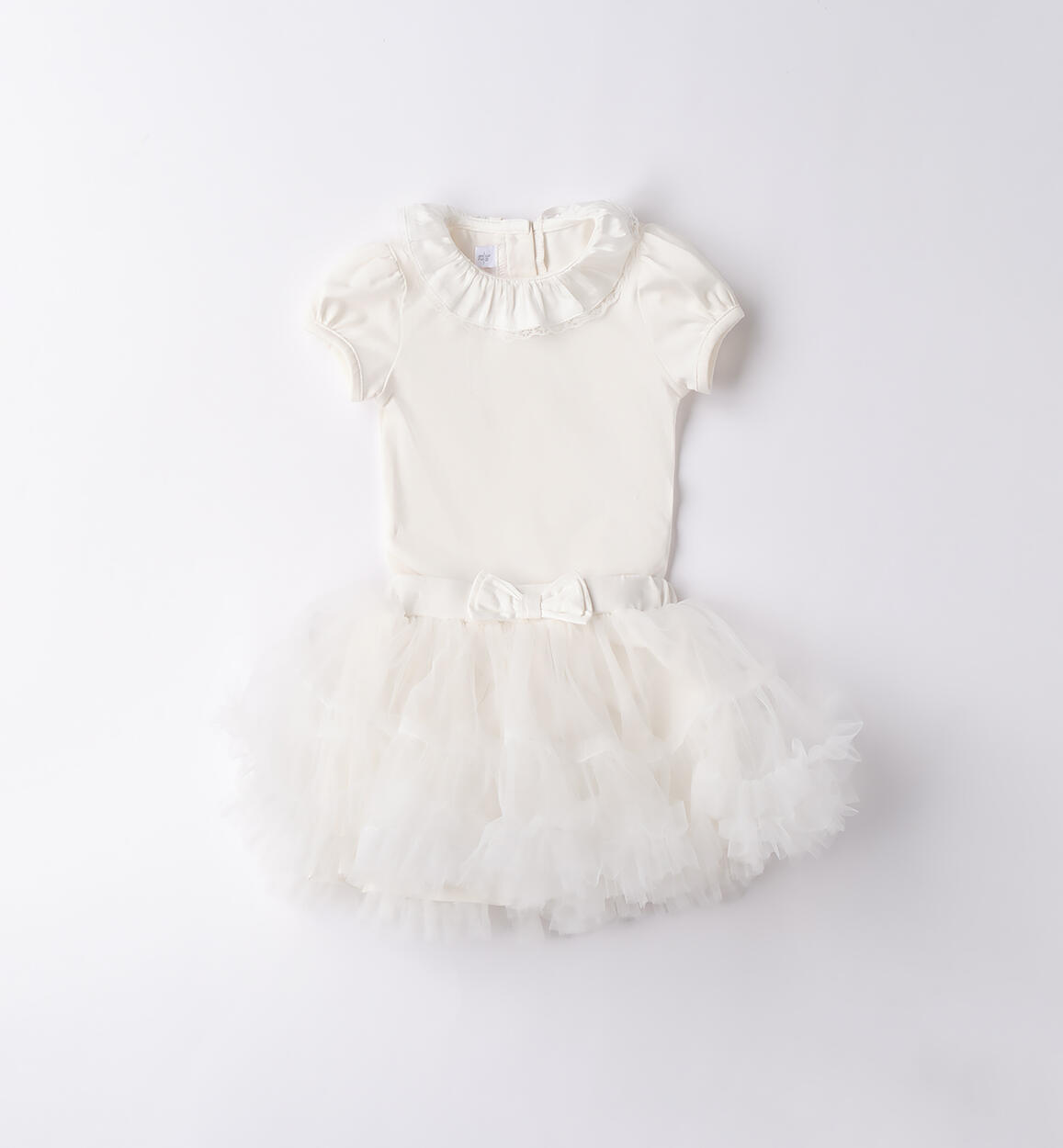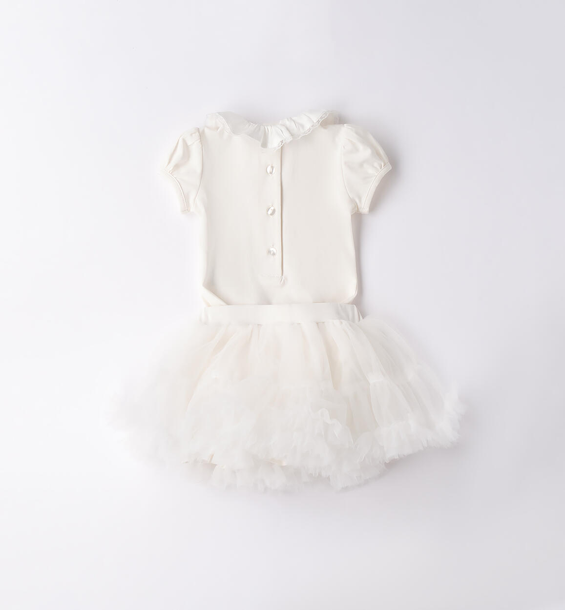 Completo neonata Minibandaย Il body รจ in jersey stretch di cotone e presenta apertura sul retro e nel sottogamba con bottoni a pressione per agevolare il cambio e la vestizione. La gonna รจ in tulle ed รจ foderata. Lunghezza al ginocchio.