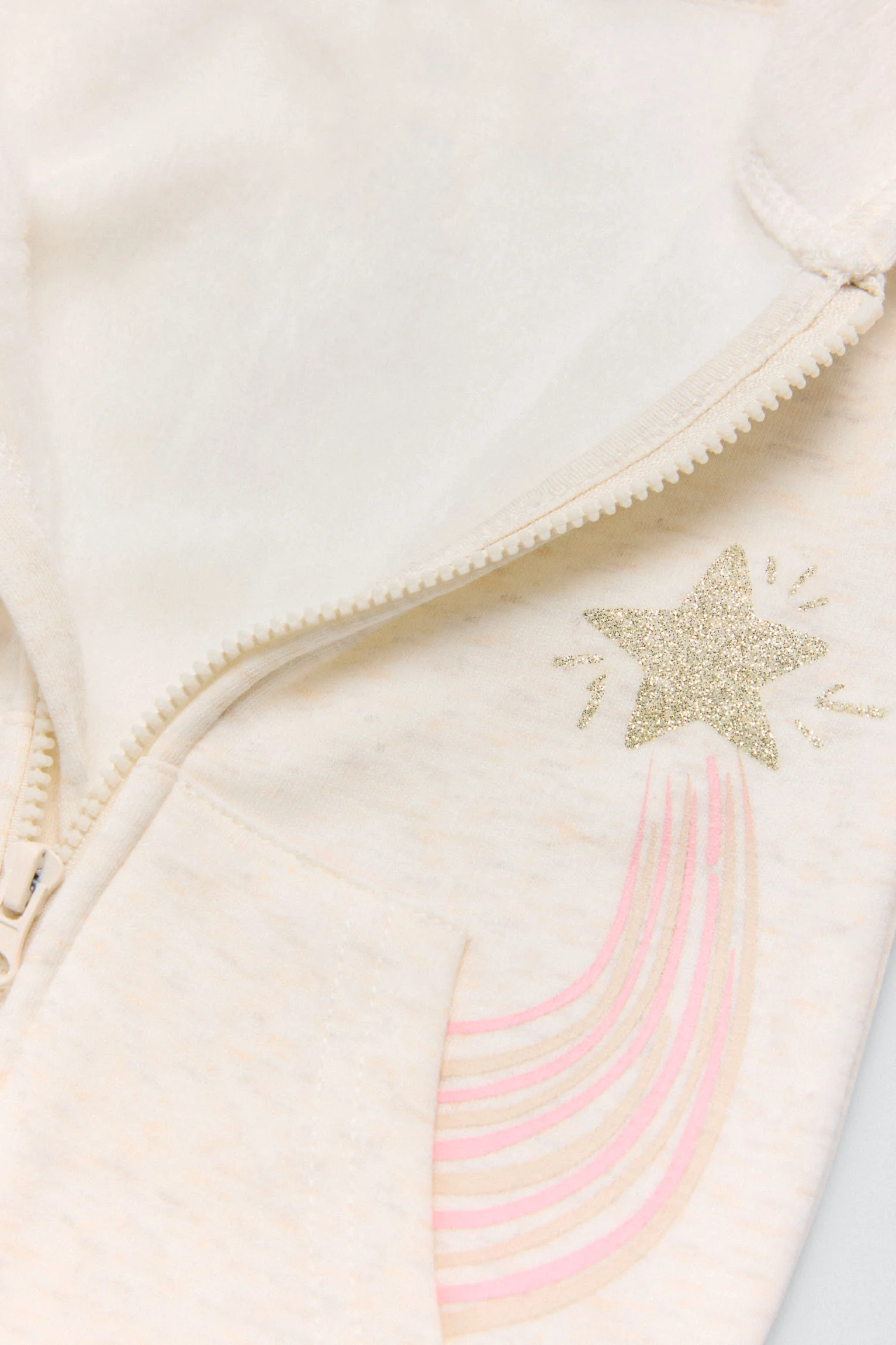 Tutina da neonato con giacca con cappuccio decorata con orecchie da coniglio e pantaloni lunghi con cintura regolabile. Tessuto in cotone naturale con interno in peluche. Un completo ideale per le passeggiate, con un design tanto adorabile quanto comodo. 33% cotone, 64% poliestere, 3% elastan