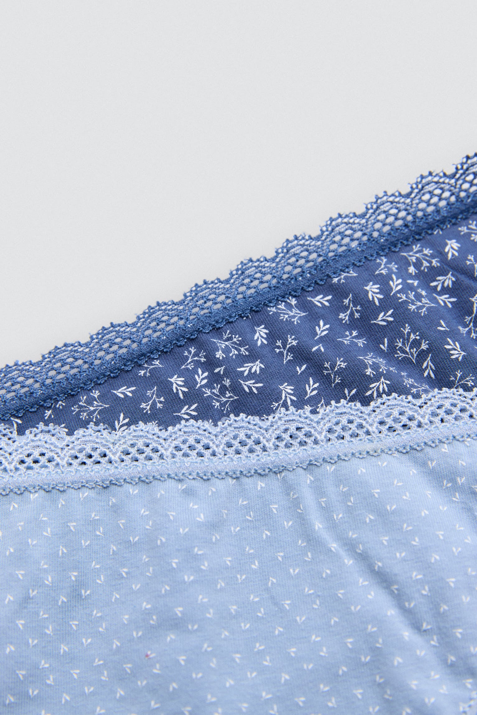 Confezione da 2 mini slip in cotone naturale per una maggiore morbidezza e adattabilitร . Questo set include due modelli nelle tonalitร del blu con delicate stampe floreali e un elegante bordo in pizzo. Una combinazione perfetta di comfort e stile femminile per l’uso quotidiano.