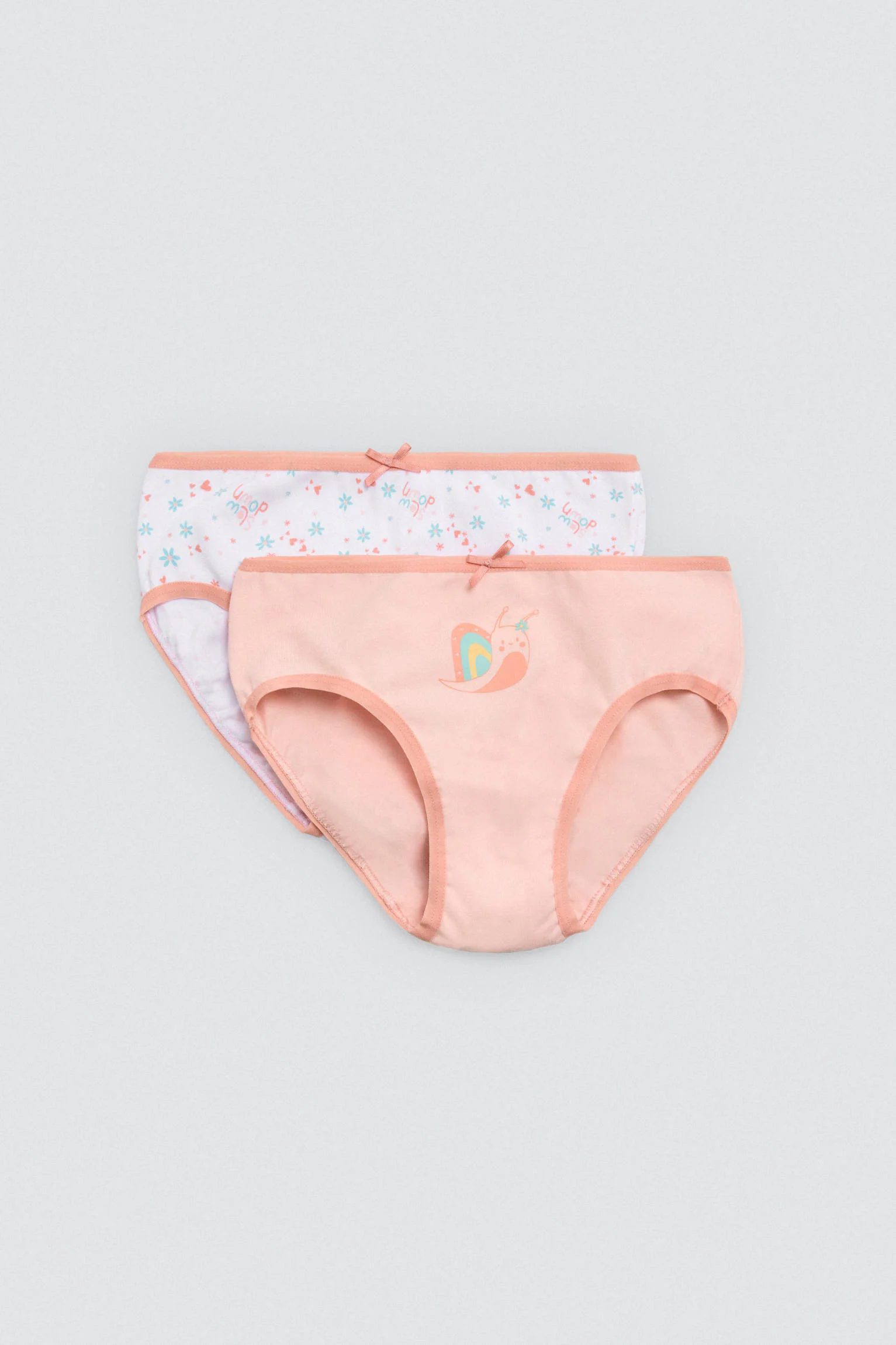 Confezione da 2 mutandine stampate in cotone naturale per bambine.