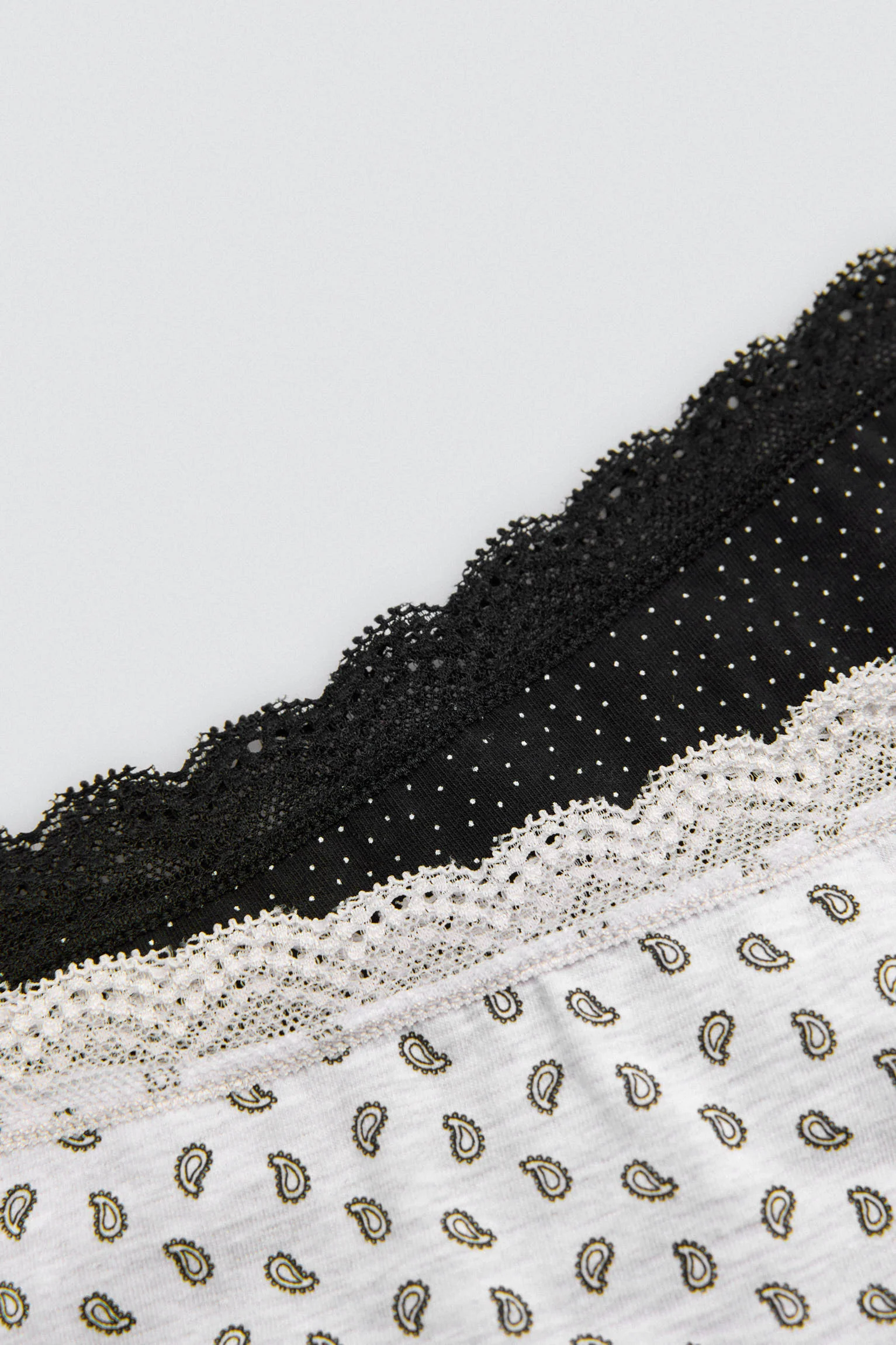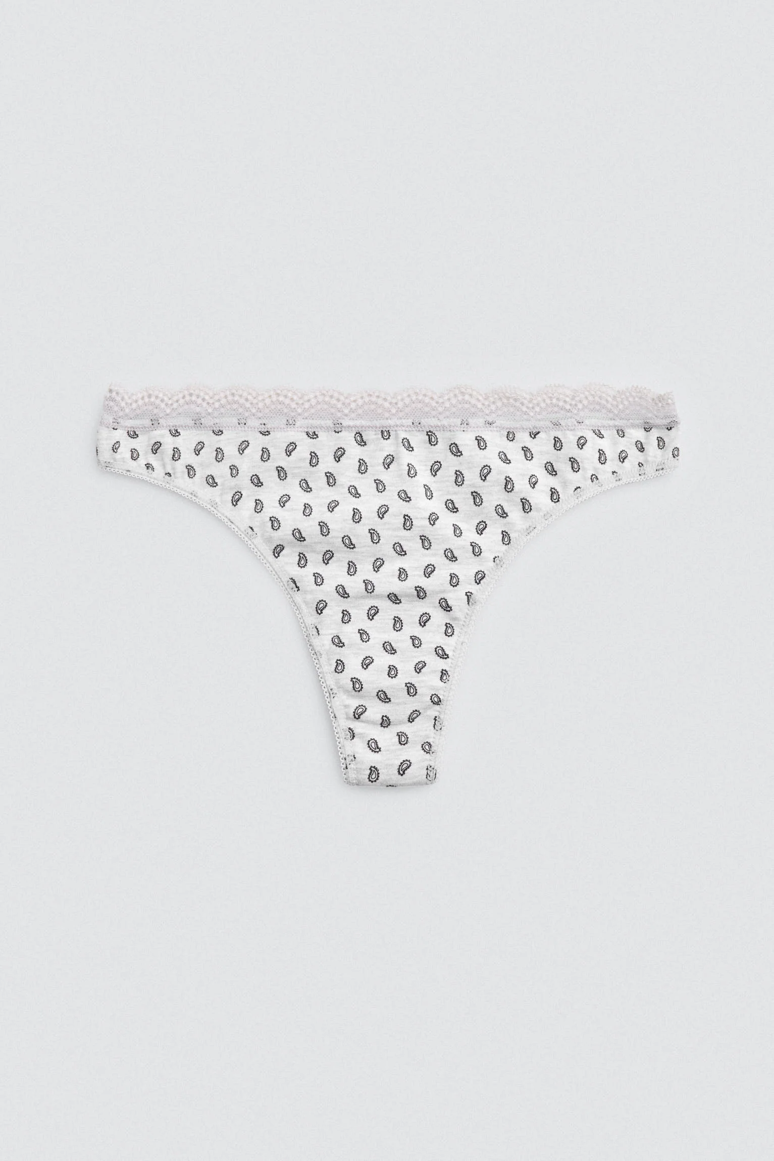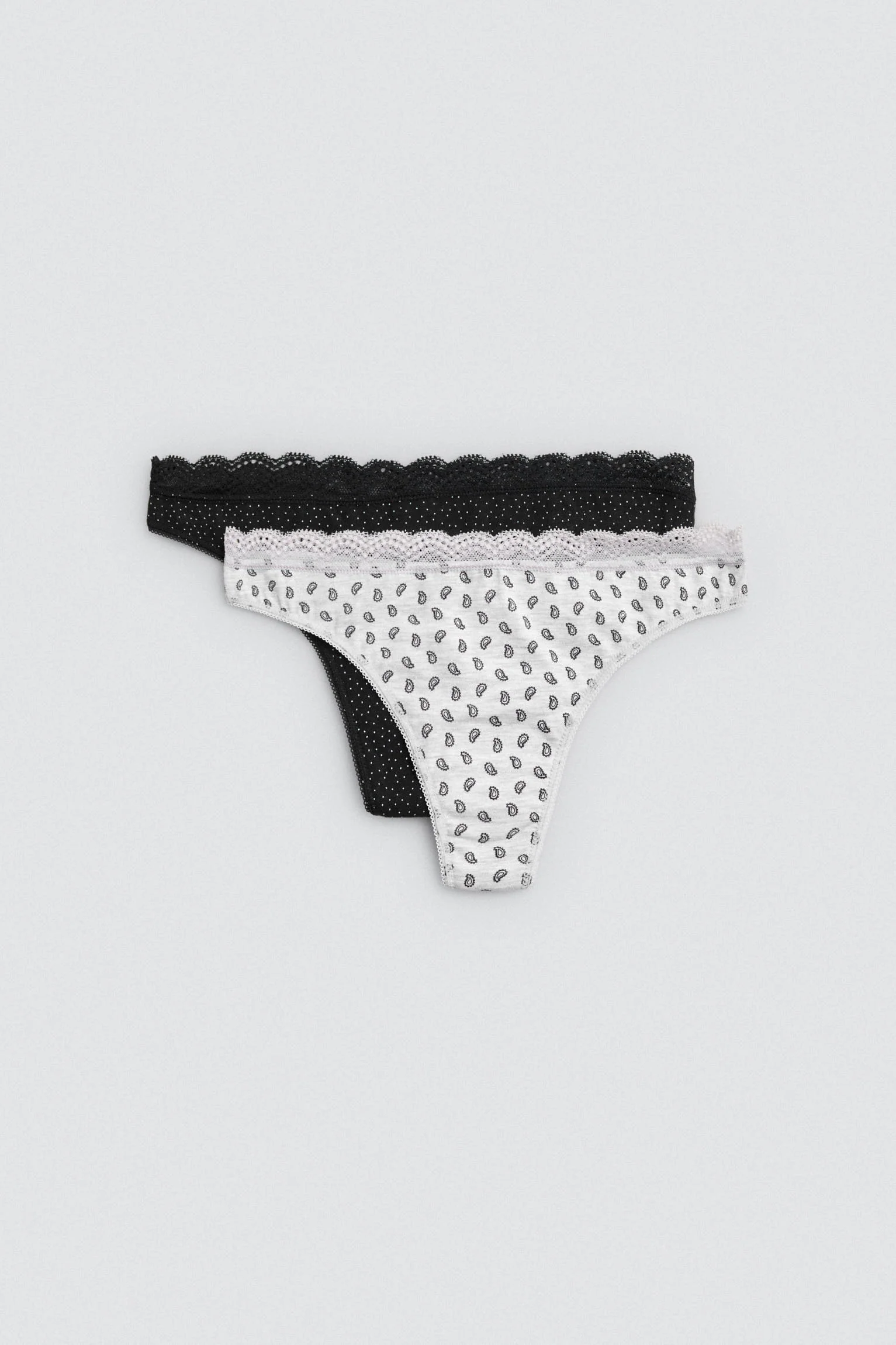 Confezione da 2 perizomi stampati in cotone naturale. Ogni modello presenta una stampa diversa e un delicato bordo in pizzo nella parte superiore, per un tocco femminile ma al tempo stesso confortevole. Progettato per accompagnarti ogni giorno con stile e leggerezza.