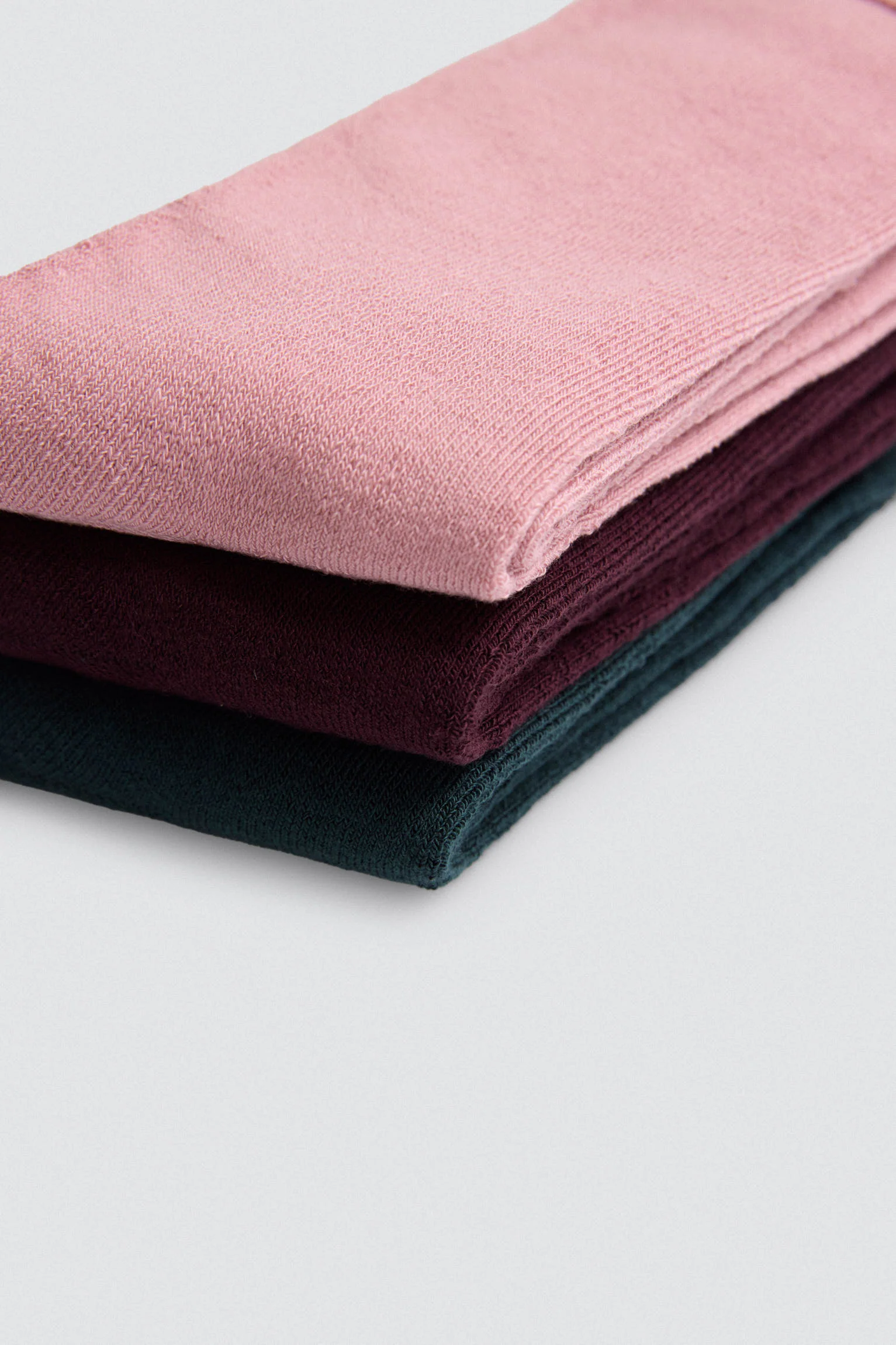 Confezione da 3 paia di calzini termici senza risvolto in diversi colori per donna. Include un paio di ogni colore: rosa, bordeaux e verde bottiglia. 85% acrilico, 12% poliestere, 3% elastan