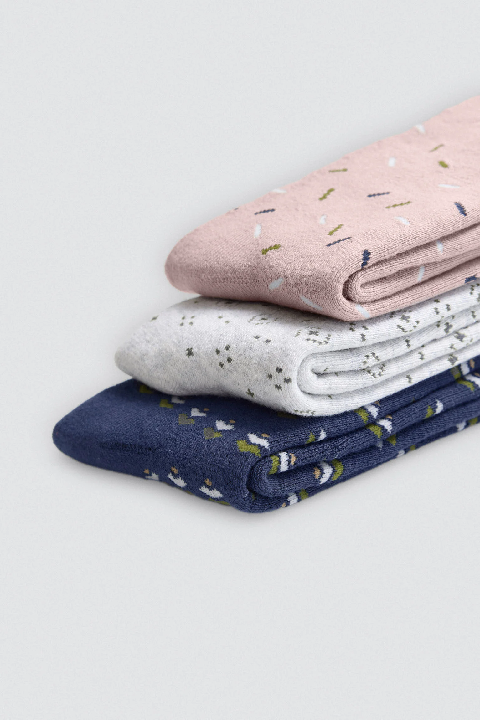 Confezione da 3 paia di calzini termici da donna senza polsini, stampati, forniscono calore senza pressione. 80% Viscosa, 18% Poliestere, 2% Elastan
