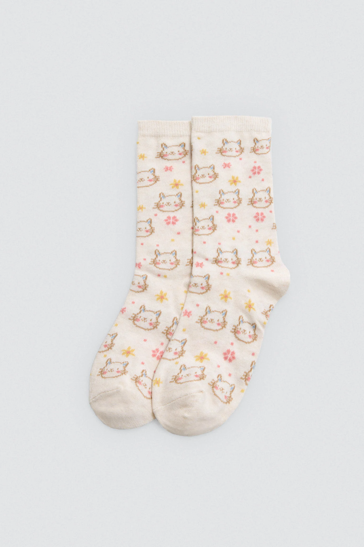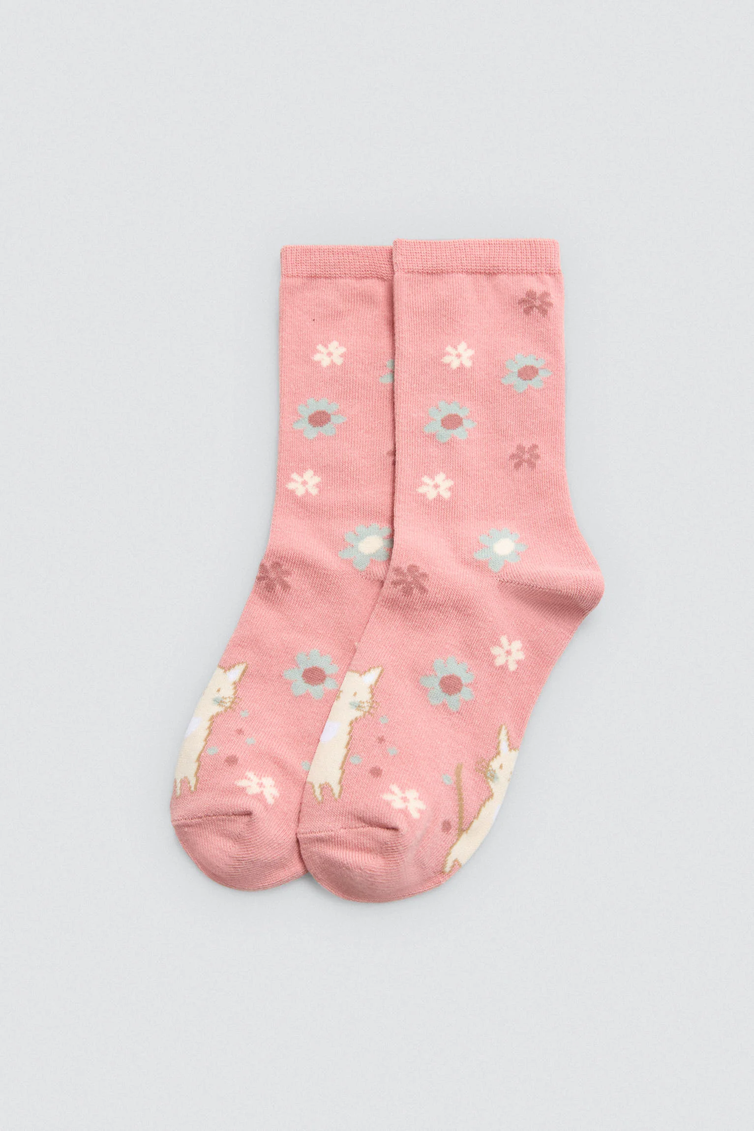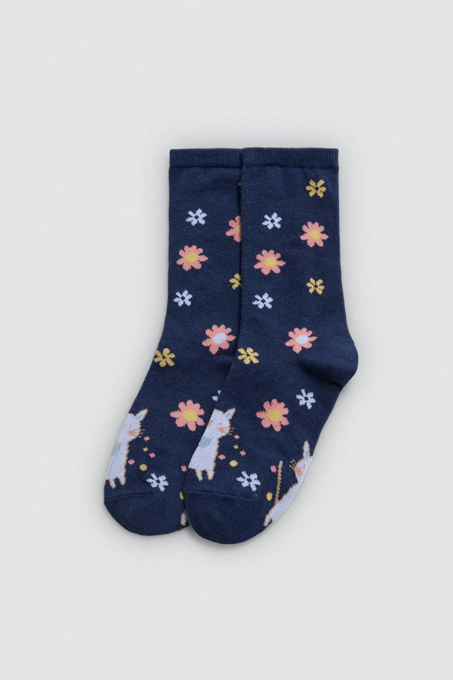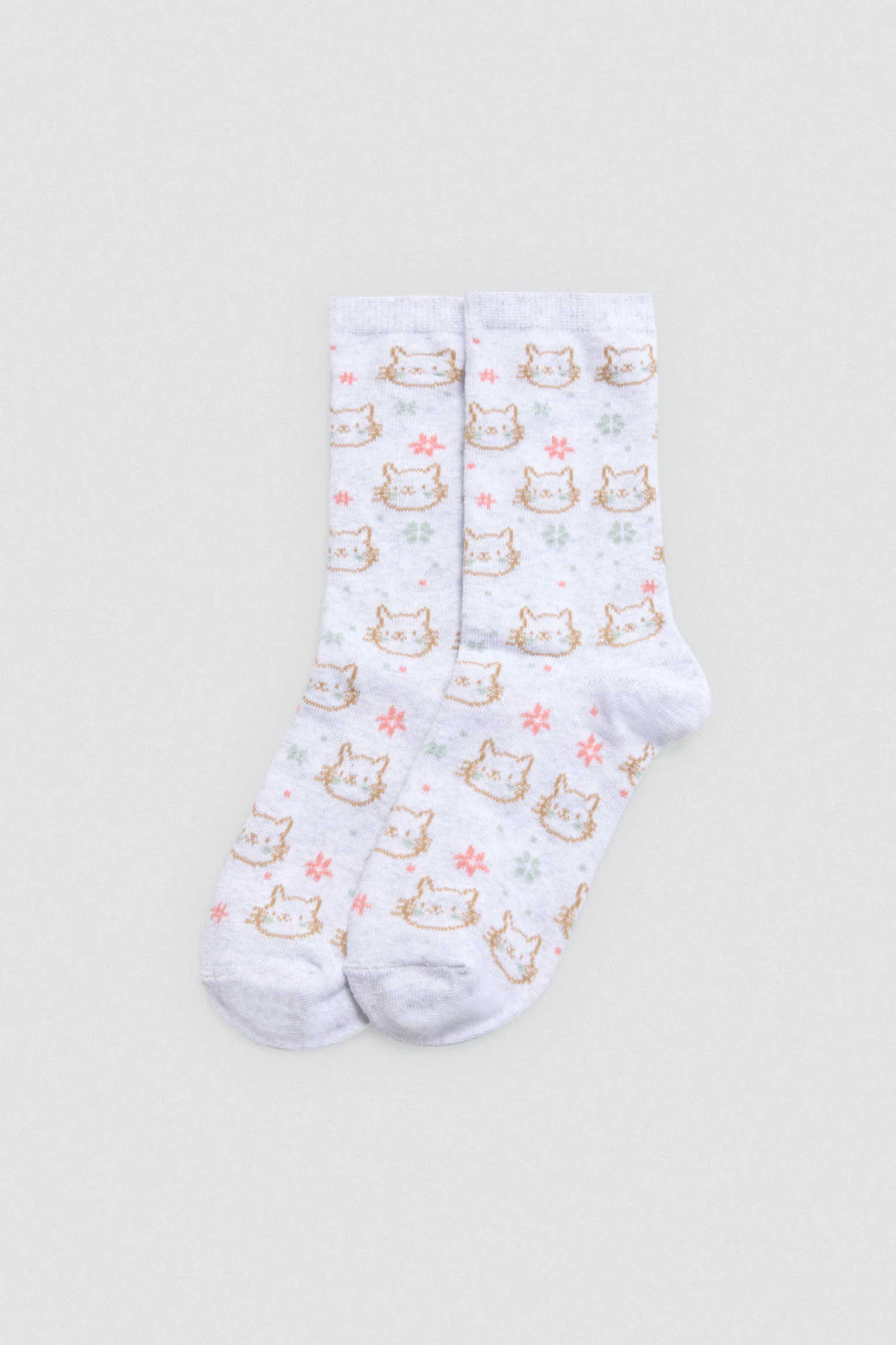 Confezione da 4 paia di calzini per bambina con polsini anti-pressione e stampa di gatti e fiori. 68% cotone, 30% poliestere, 2% elastan