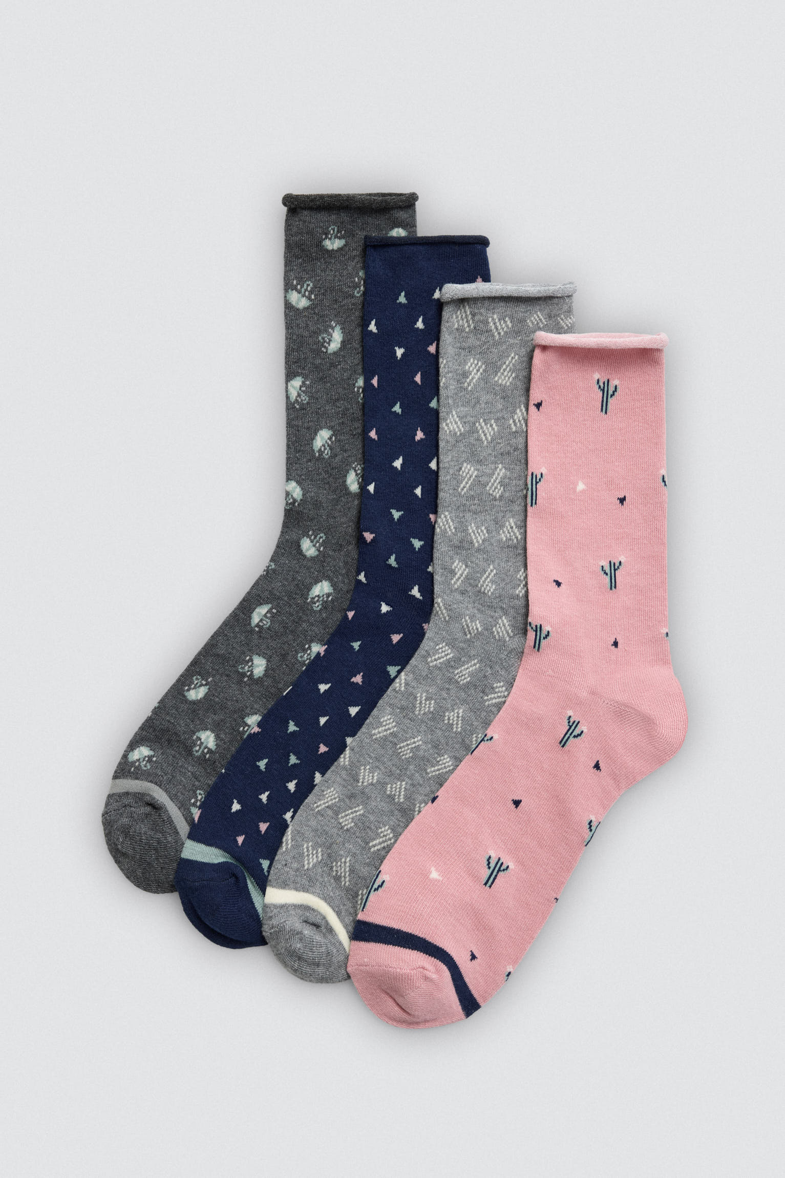 Confezione da 4 paia di calzini stampati senza risvolto per donna.