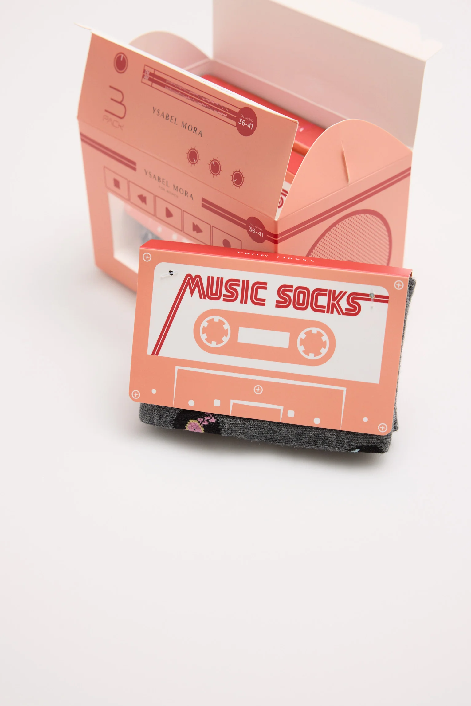 La confezione da 3 calzini alti fino al ginocchio “Music Socks” di Ysabel Mora รจ il regalo ideale per gli amanti della musica e della comoditร . Ogni paio presenta una stampa musicale diversa e vari colori, aggiungendo un tocco creativo e originale alla tua vita quotidiana. Il polsino anti-pressione garantisce una vestibilitร comoda che non stringe nรฉ lascia segni, e la sua presentazione in una confezione speciale con design a cassetta lo rende la scelta perfetta per sorprendere chiunque.