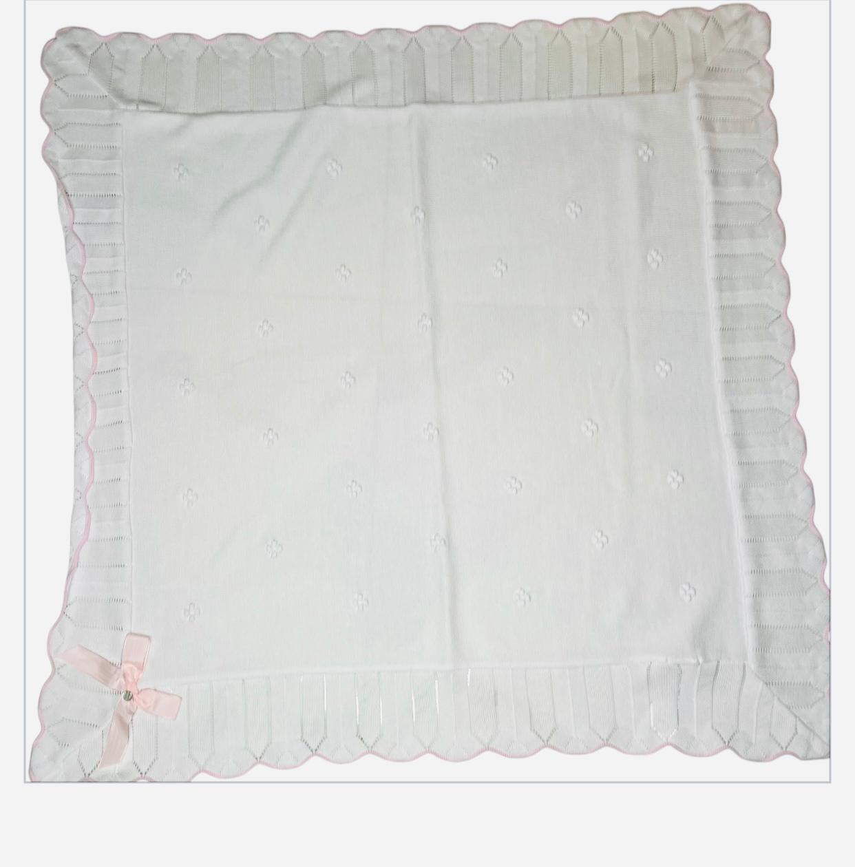 Coperta Dr Kid fondo bianco con smerlo in rosa con applicazione di fiocco