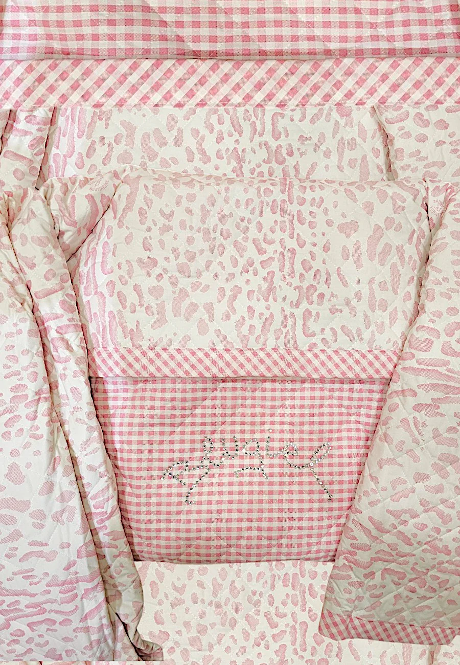 Copriletto Blugirl by Blumarine double fantasia microcheck da un lato e maculato dall’altro. Lettering stras. Cura nei dettagli e controllo qualitร verificato Svad Dondi.