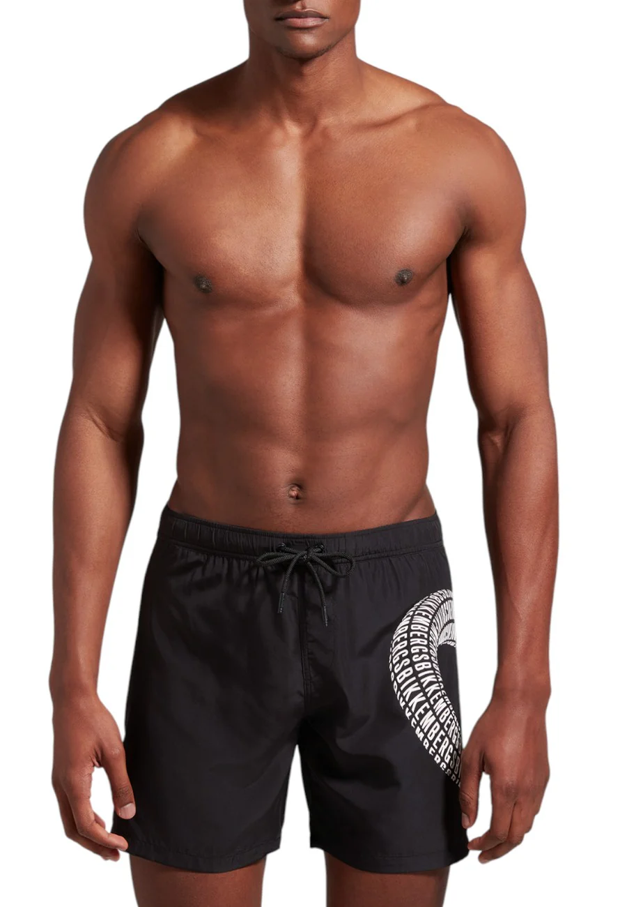 Una stampa a contrasto e a effetto 3D, composta dal lettering Bikkembergs, personalizza i boxer mare da uomo in poliestere con coulisse in vita. 100% poliestere
