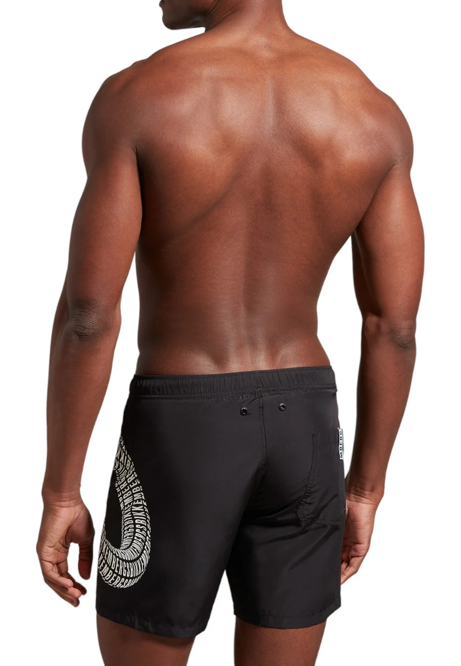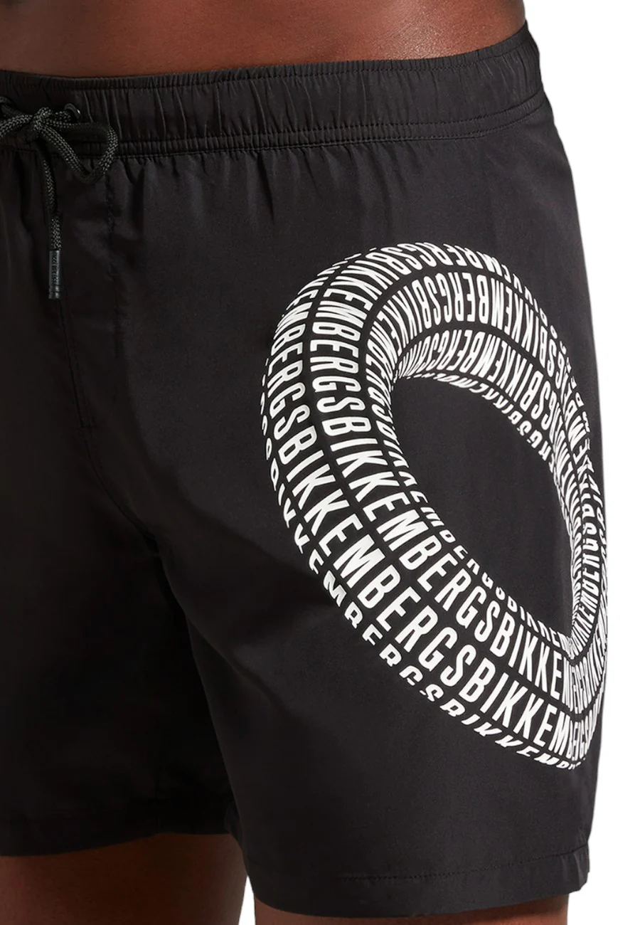 Una stampa a contrasto e a effetto 3D, composta dal lettering Bikkembergs, personalizza i boxer mare da uomo in poliestere con coulisse in vita.